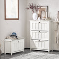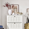 Verbeterde duurzaamheidDe Shoe Tipper Cabinet is gemaakt van hoogwaardige MDF- en PB-materialen en belooft langdurige duurzaamheid en stabiliteit, waarbij hij moeiteloos tot 26 kg lading kan verwerken.