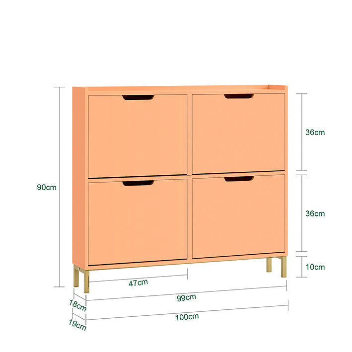 De schoenenopbergkast is een ruimtebesparende oplossing voor elke entree. Gemaakt van duurzaam MDF en metaal, kan hij tot 60 kg dragen. Dankzij de 4 kleppen van de kast kun je verschillende schoenmaten en -ontwerpen georganiseerd opbergen.