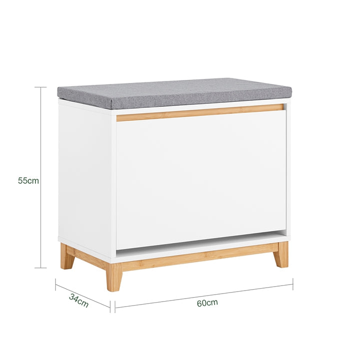 De Schoenenkast is een moderne oplossing voor alle entrees en biedt optimaal ruimtegebruik. Het klepontwerp maakt het gemakkelijk opbergen van verschillende schoenmaten en -stijlen mogelijk. Het zitkussen zorgt voor comfort tijdens het wisselen van schoenen.