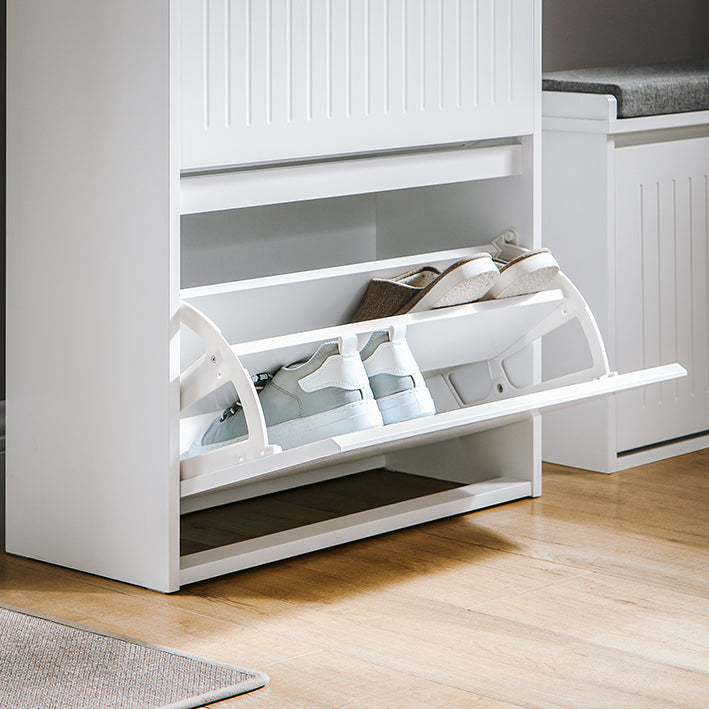 Veelzijdig ontwerpDeze schoenenkast is verkrijgbaar in drie elegante kleuren: lichtgrijs, zwart en wit en kan naadloos in elk interieur worden geïntegreerd. Het strakke ontwerp past ook bij andere stukken uit de collectie.