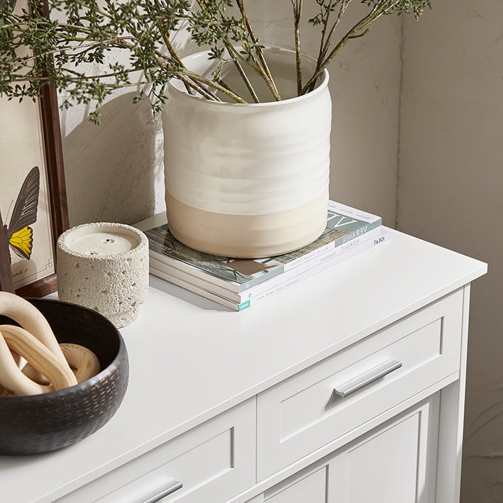 De schoenenopbergkast is een veelzijdige opbergoplossing voor je gang of entree. Met flexibele schuifdeuren, twee ruime lades en een stevige constructie biedt deze schoenenkast een strakke en praktische manier om je schoenen en accessoires te ordenen.