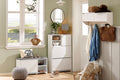 Aanvullende setCoördineer uw entreemeubilair door deze schoenenkast te combineren met de bijpassende wandkapstok en schoenenbank voor een samenhangende look die de functionaliteit verbetert.