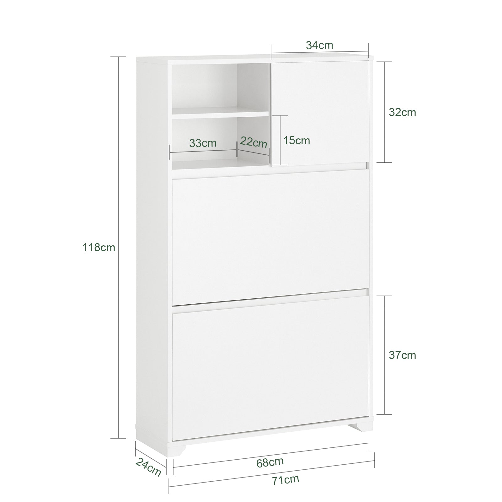 Veelzijdige opslagoptiesDe Schoenenkast Tipper is uitgerust met 2 kleppen en een zijdeur, zodat u schoenen van verschillende maten en stijlen kunt opbergen, evenals sjaals, hoeden en andere accessoires, waardoor uw ruimte netjes en georganiseerd blijft.
