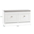 Ruimtebesparend ontwerpMet twee kleppen voor efficiënte opslag is deze schoenenkastbank ideaal om de ruimte in uw hal of hal te optimaliseren, zodat uw schoenen netjes opgeborgen en toegankelijk blijven.