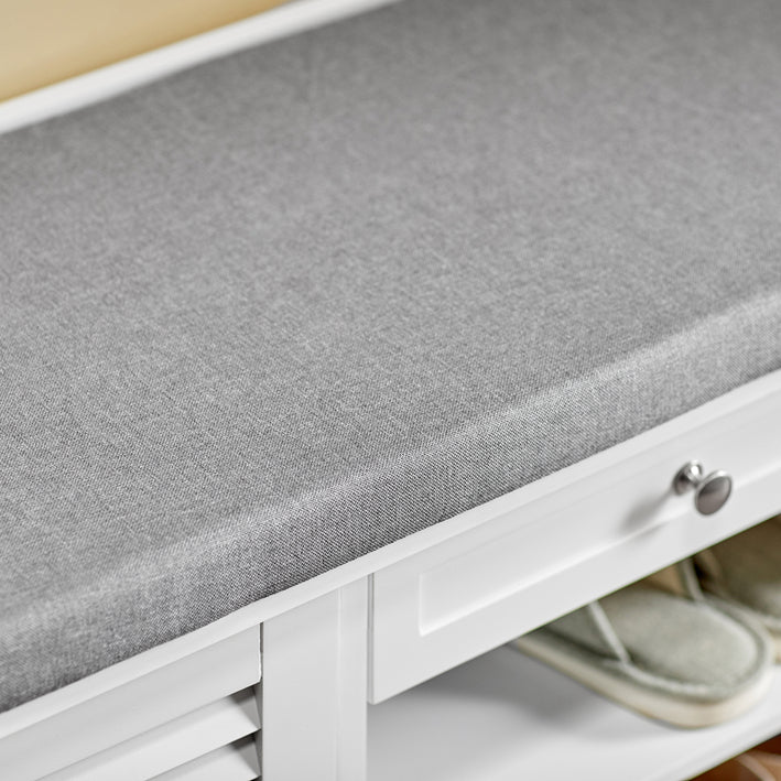 Ruimtebesparend ontwerpDeze bank heeft een compact ontwerp met dubbele deuren en planken, waardoor je de ruimte maximaliseert terwijl je schoenen netjes geordend en uit het zicht blijven.