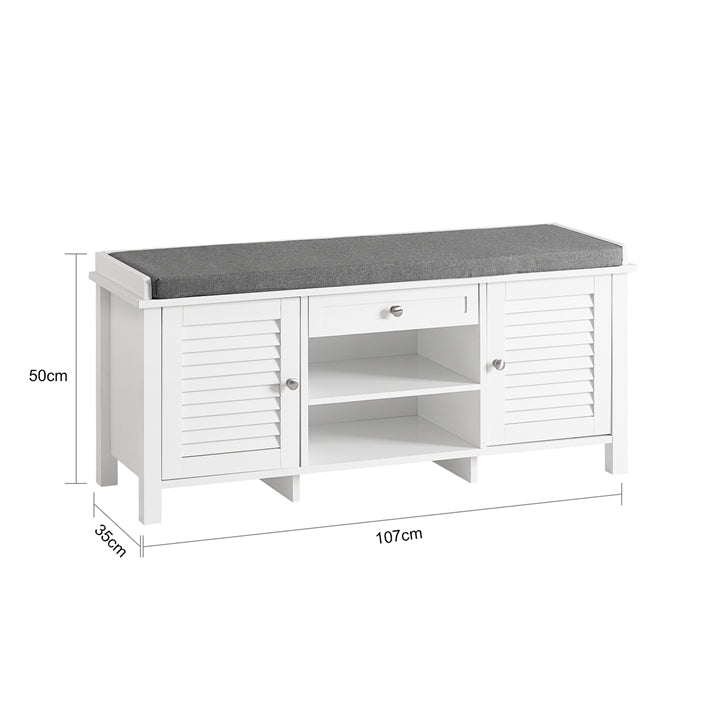 Schoenenopbergbank - Ingangsbank - Schoenenorganizer - Ruimtebesparend ontwerp - Dubbele deur - Dubbele plank - Comfortabele zitplaatsen - 107 cm x 50 cm x 35 cm