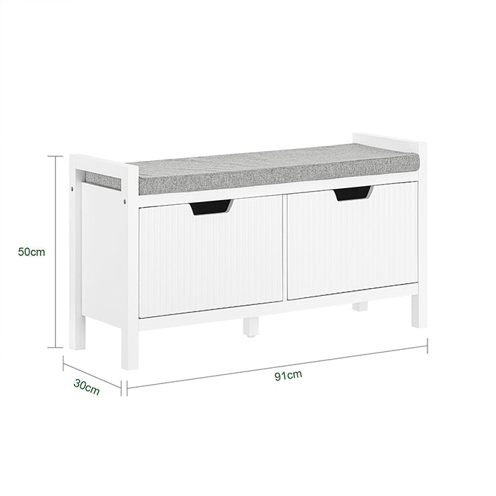 Schoenenopbergbank - Ingangsstoel - Schoenenorganizer - Comfortabel kussen - Veelzijdig Wit - 91 cm x 50 cm x 30 cm