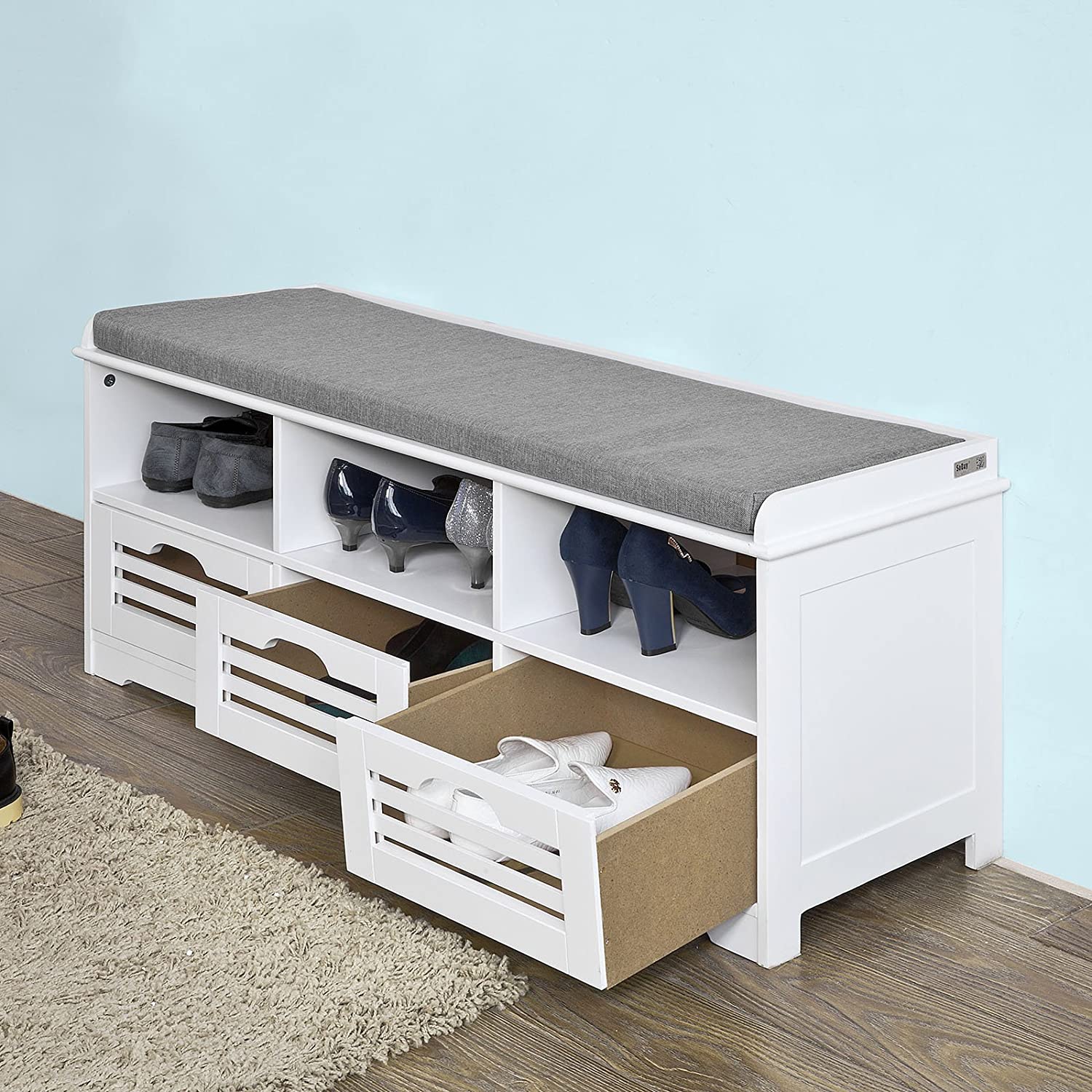 Schoenenopbergbank met 3 Laden - Schoenenrek - Schoenenkast in de Gang - Wit