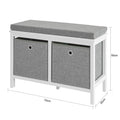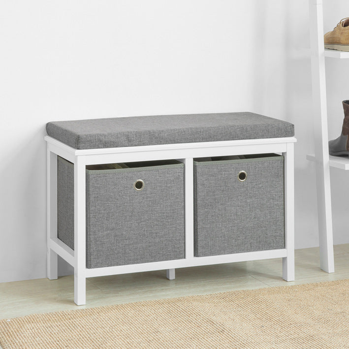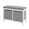 Efficiënte opslagoplossingMet twee afneembare manden dient deze bank als een ideale ruimtebesparende opbergmogelijkheid voor schoenen, speelgoed of andere huishoudelijke artikelen, waardoor uw ruimte netjes en overzichtelijk blijft.