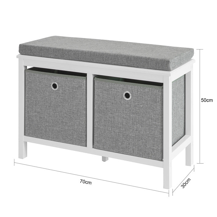 schoenenopbergbank met kussen - zittende ladekast - inkombank - 2 verwijderbare manden - ruimtebesparend - comfortabele zitplaatsen - MDF en fleece materiaal - 70 cm x 50 cm x 30 cm