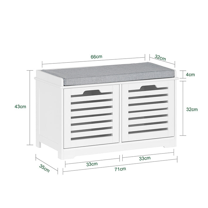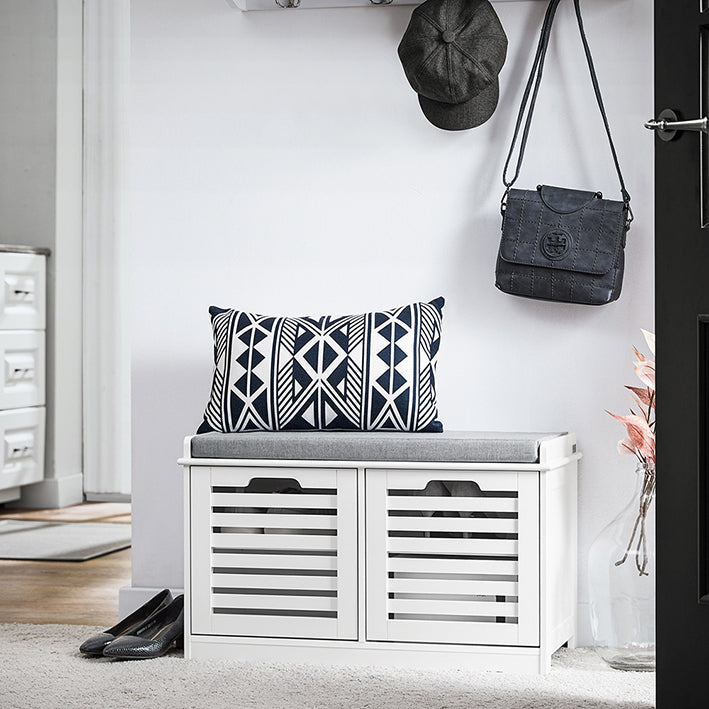 Het Schoenenrek is een veelzijdige opbergoplossing met 4 compartimenten en verstelbare planken, perfect voor het organiseren van schoenen en andere spullen en biedt tegelijkertijd een handige zitplaats voor het aan- en uittrekken van schoenen.