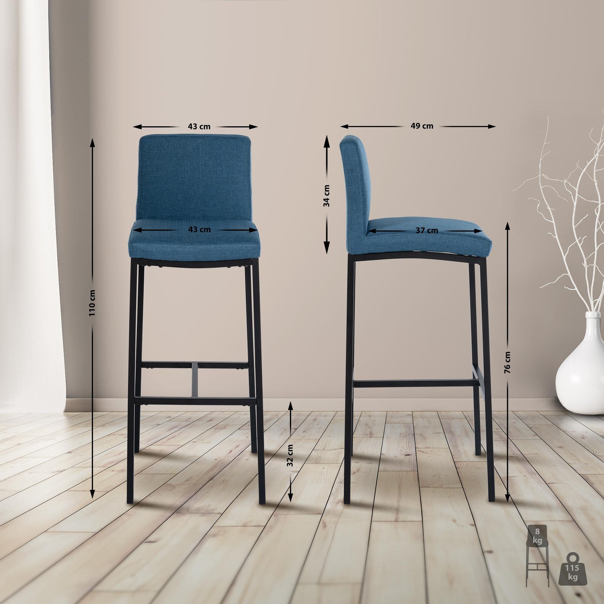 Set van 2 barkrukken, barstoelen, comfortabel en modern design, blauw, stof, eenvoudig te monteren