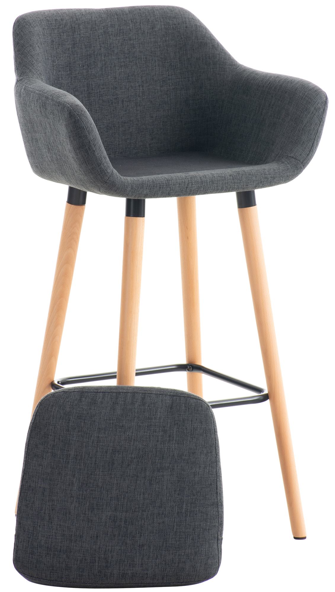 De set van 2 barkrukken biedt elke bar een extra touch. Ontworpen als een fauteuil, valt deze stoel op door zijn ontwerp. Met de rugleuning en vorm kunt u comfortabel meerdere uren zitten. De stoel, met stoffen bekleding en een afneembare kussen, is eenvoudig schoon te maken. Klittenband houdt de zitting op zijn plaats. De hoes van het zitkussen is gemakkelijk te verwijderen en wasbaar dankzij de ritssluiting. Het stabiele vierpootframe van beukenhout bevat een discrete metalen voetsteun, waardoor het ontwerp van de kruk compleet is.