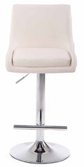 Deze barkruk is bekleed met kunstleer. De zitting is dik gevuld voor comfort en biedt uw rug uitstekende ondersteuning door de hoge rugleuning. Met de gasveer kunt u de barkruk moeiteloos op de perfecte hoogte instellen, ideaal voor elke bar of toonbank. De meegeleverde voetensteun, die aanzienlijk bijdraagt aan het zitcomfort, is synchrone verstelbaar met de zitting. U kunt de zitting 360° draaien samen met de voetensteun. Het frame is gemaakt van verchroomd metaal, en de trompetvoet heeft vloerbeschermers die krassen voorkomen. Deze barkruk is gemakkelijk te reinigen met een vochtige katoenen doek en is beschikbaar in verschillende kleuren.