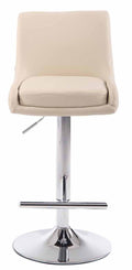 Deze barkrukken zijn bekleed met kunstleer. De zitting is rijkelijk gevuld, wat uw rug goede ondersteuning biedt dankzij de hoge rugleuning. Door de gasveer kan de barkruk eenvoudig en traploos op de gewenste hoogte worden afgesteld, wat hem perfect maakt voor elke toonbankhoogte. De voetsteun, die voor extra comfort zorgt, kan samen met de hoogte van de zitting worden aangepast. De zitting kan volledig 360° worden gedraaid, samen met de voetsteun. Het frame is vervaardigd uit verchroomd metaal en onder de trompetvoet zitten vloerbeschermers die krassen voorkomen. Deze barkruk is gemakkelijk schoon te maken met een vochtige katoenen doek en is verkrijgbaar in vele kleuren.