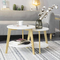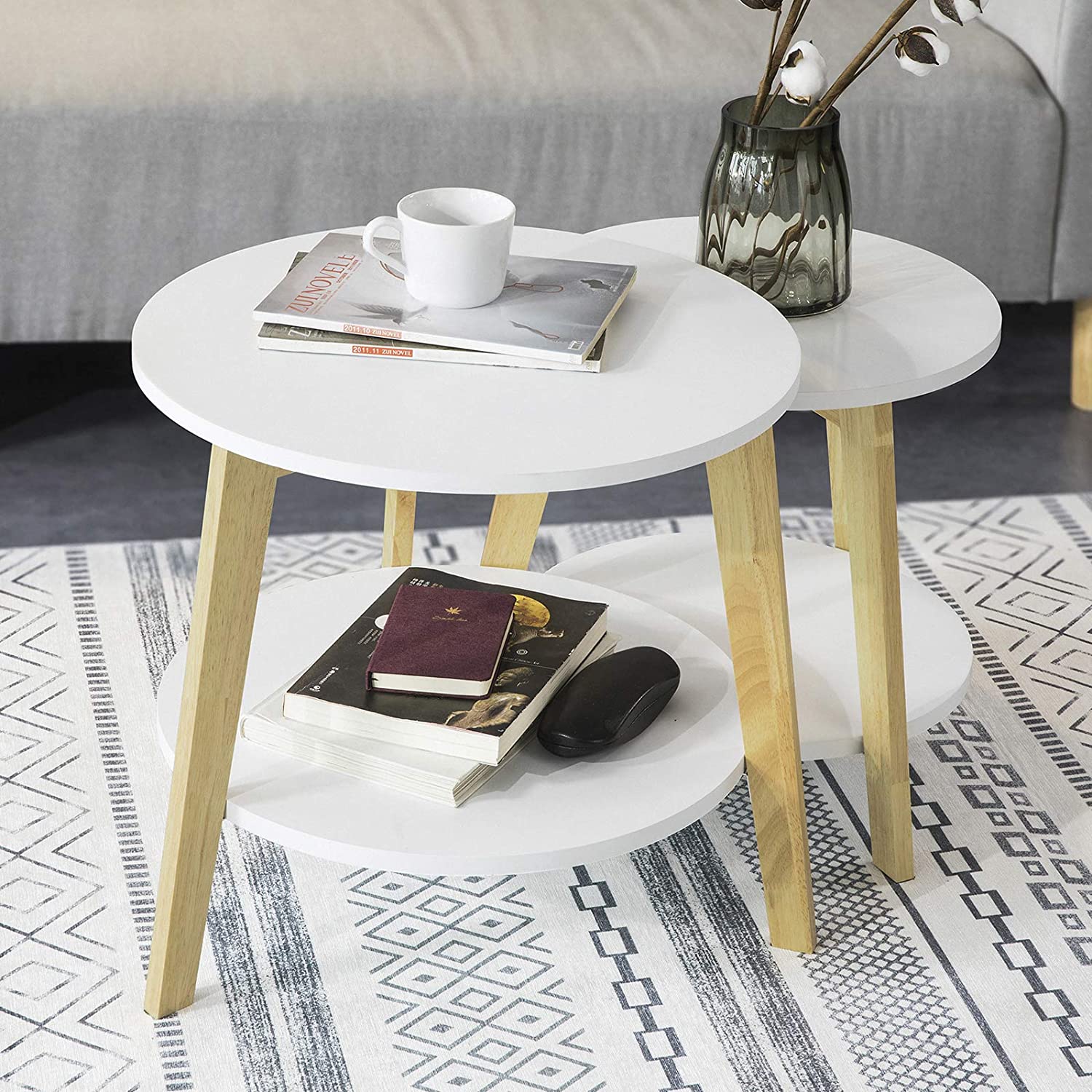 - Deze moderne set van 2 ronde bijzettafels bestaat uit 1 grote en 1 kleine tafel.