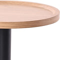 De ronde houten tafelbladen stralen een natuurlijke en warme sfeer uit, terwijl de robuuste, matzwarte gepoedercoate metalen frames zorgen voor stabiliteit en een moderne look. Vloerbeschermers beschermen gevoelige vloeren tegen krassen.