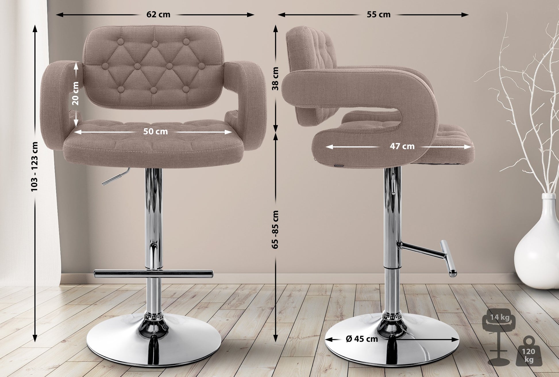 Deze barkruk biedt een comfortabele, gestoffeerde zitting bekleed met stof. De zitting heeft een 360 graden draaibare functie, zodat je gemakkelijk de gewenste zithouding kunt aannemen.