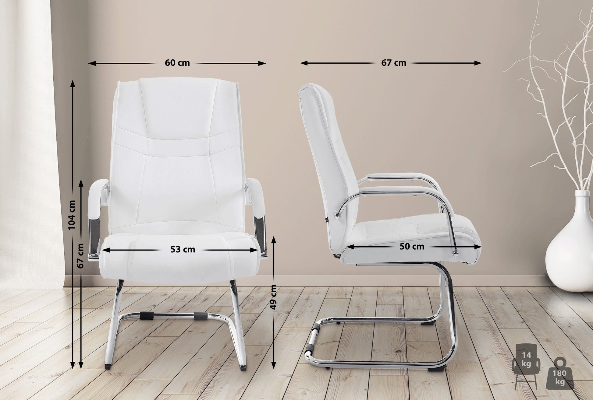 De cantilever stoelen geven elke ruimte een exclusieve uitstraling en overtuigen niet alleen door hun uitstekende ziteigenschappen maar ook door hun moderne design. Vrij zwaaiend passen ze zich precies aan de beenlengte en het gewicht van de zittende persoon aan. Dankzij de ergonomisch gevormde zitting en de comfortabel gestoffeerde armleuningen worden ook langere zitperiodes niet belastend. De comfortabele bekleding is bekleed met kunstleer. De stoelen staan gewoon goed op het robuuste en extra versterkte metalen frame voor elke gelegenheid - u hoeft alleen maar de juiste kleur te kiezen uit ons bestelassortiment. Deze stoelen zijn ideaal voor grote en zware mensen, aangezien ze een maximale belasting van 180 kg kunnen dragen.