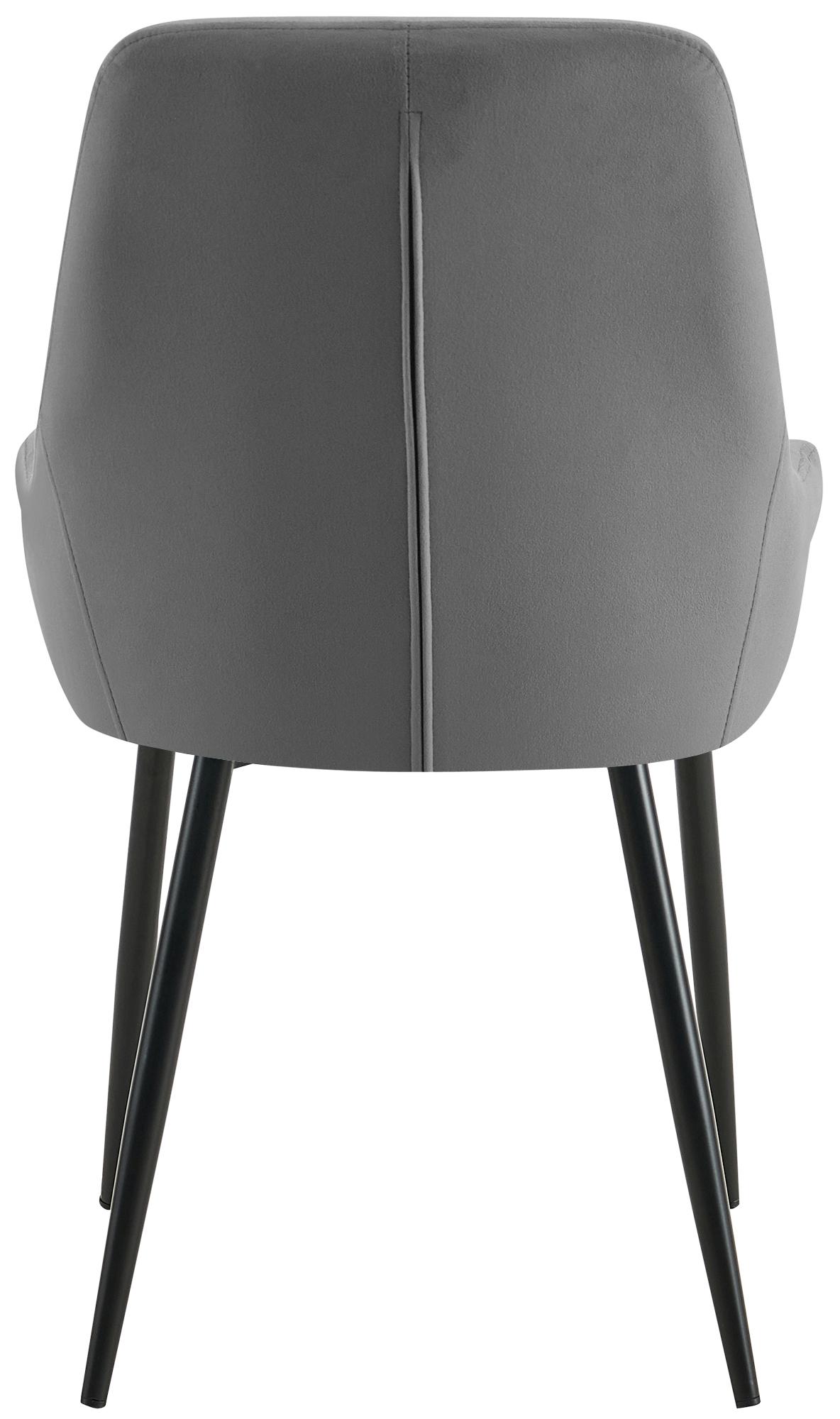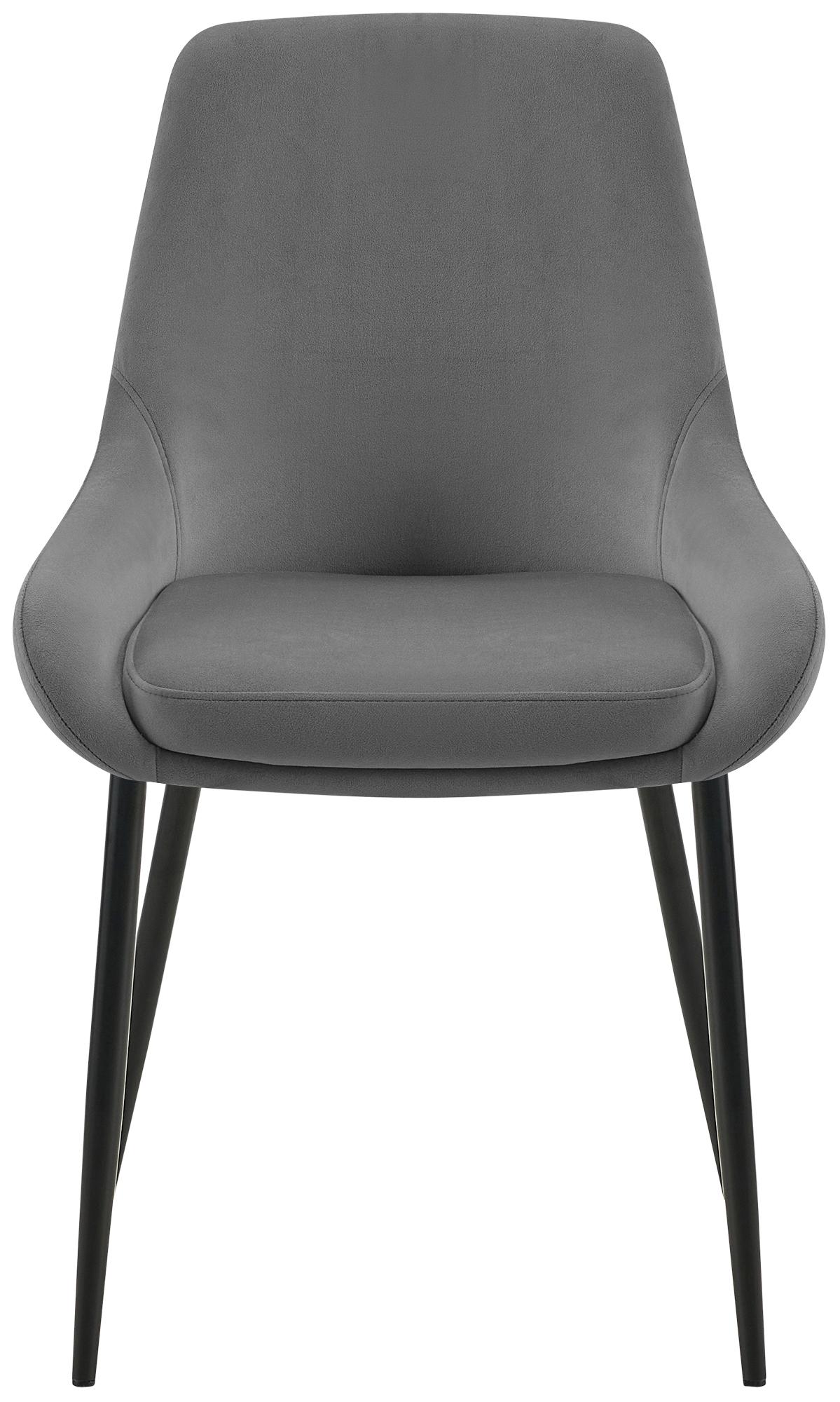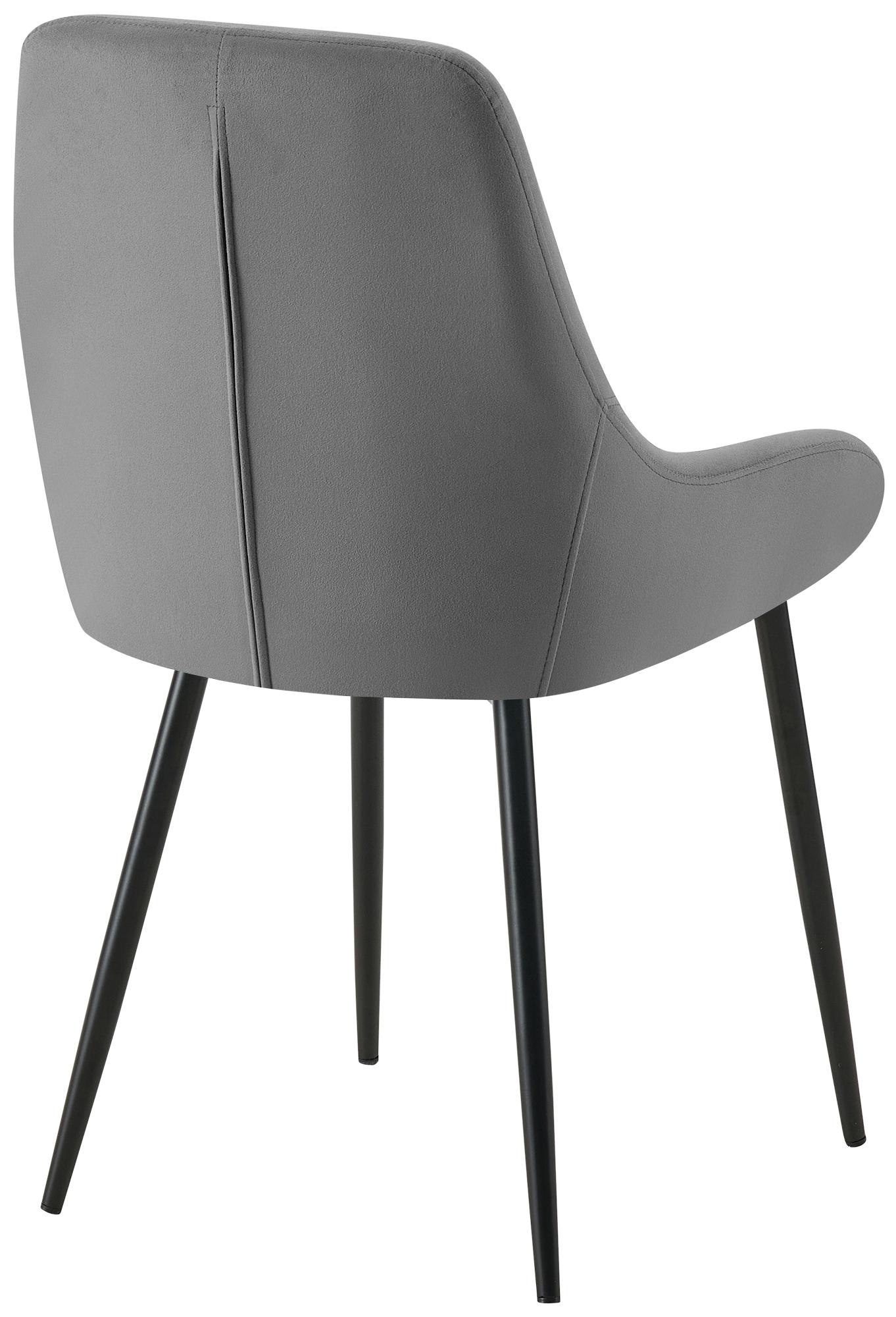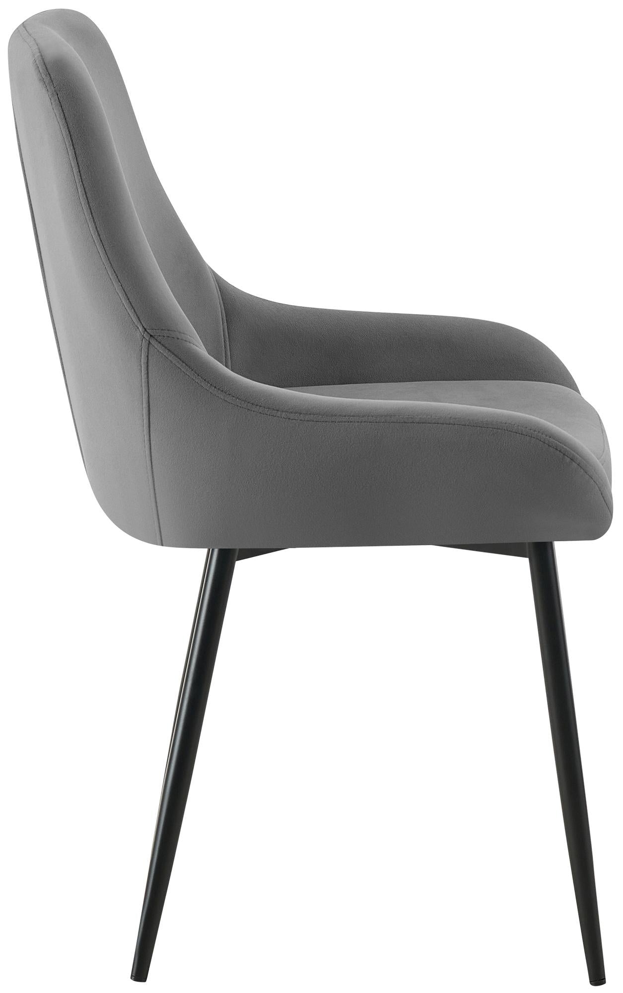 Set van 2 moderne eetkamerstoelen in donkergrijs fluweel, matzwart metaal