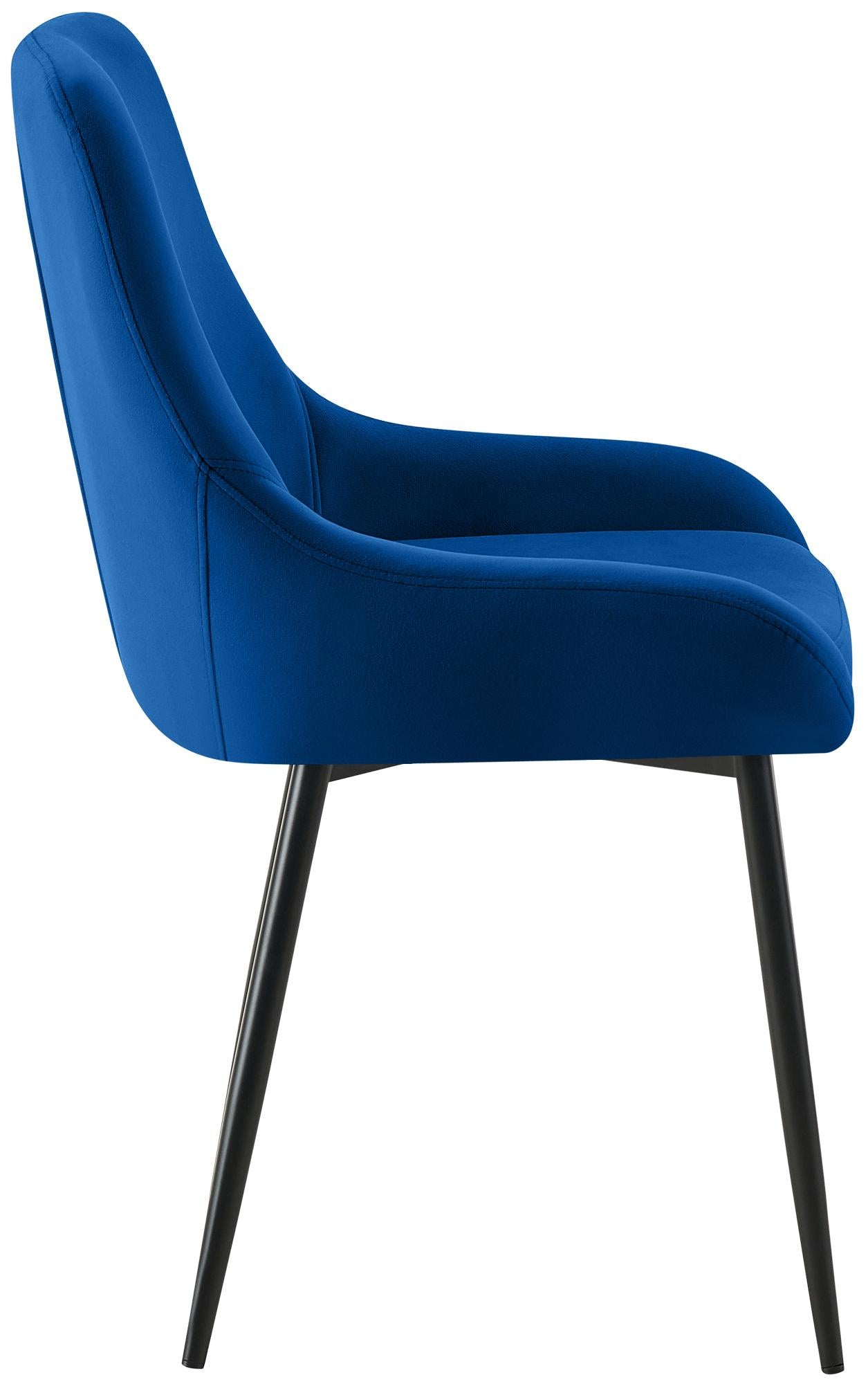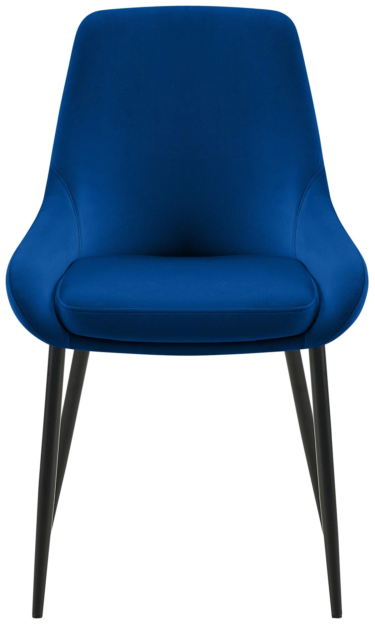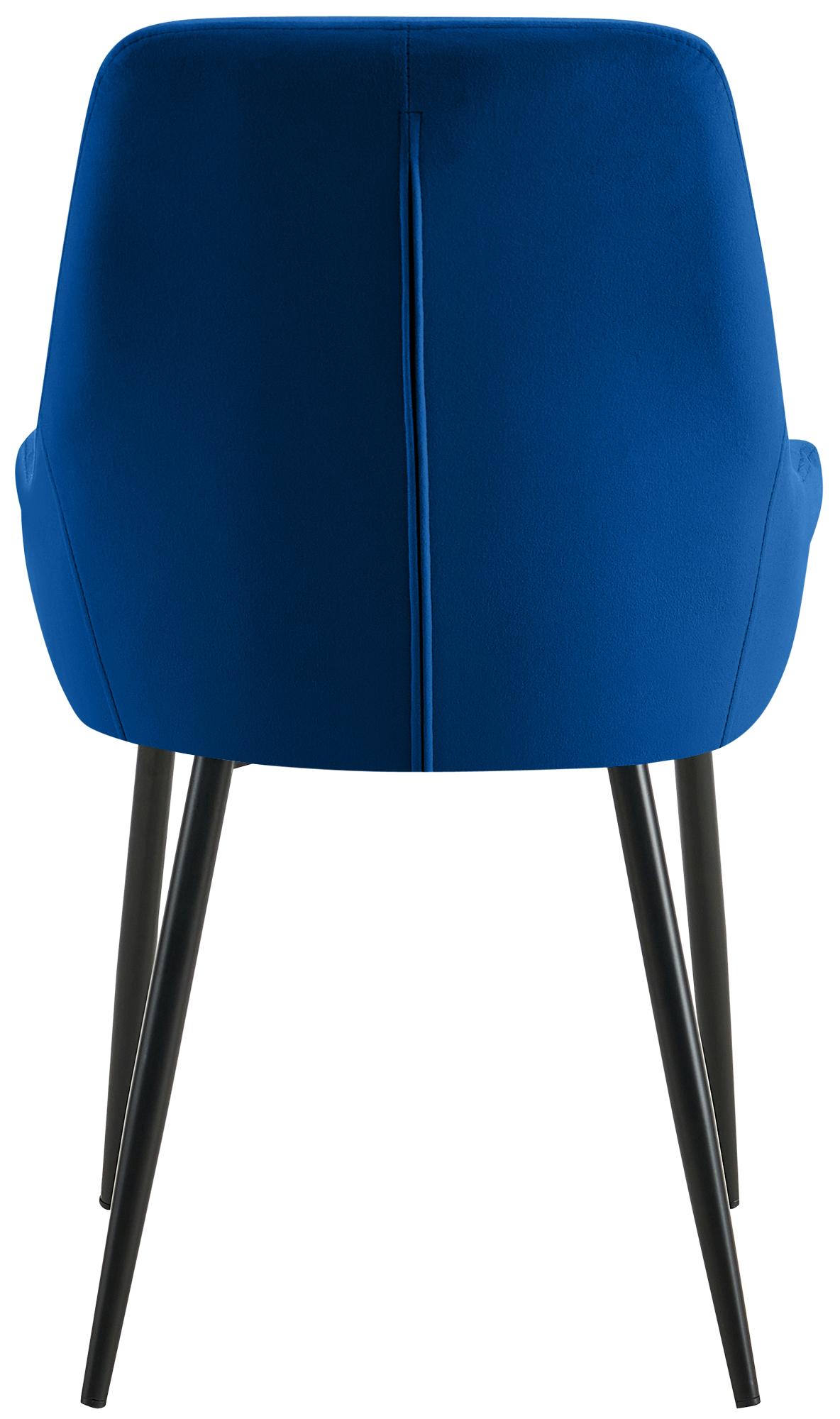 Set van 2 moderne eetkamerstoelen in donkerblauw fluweel en matzwart metaal