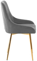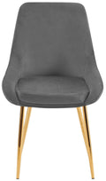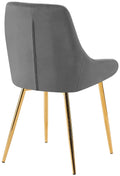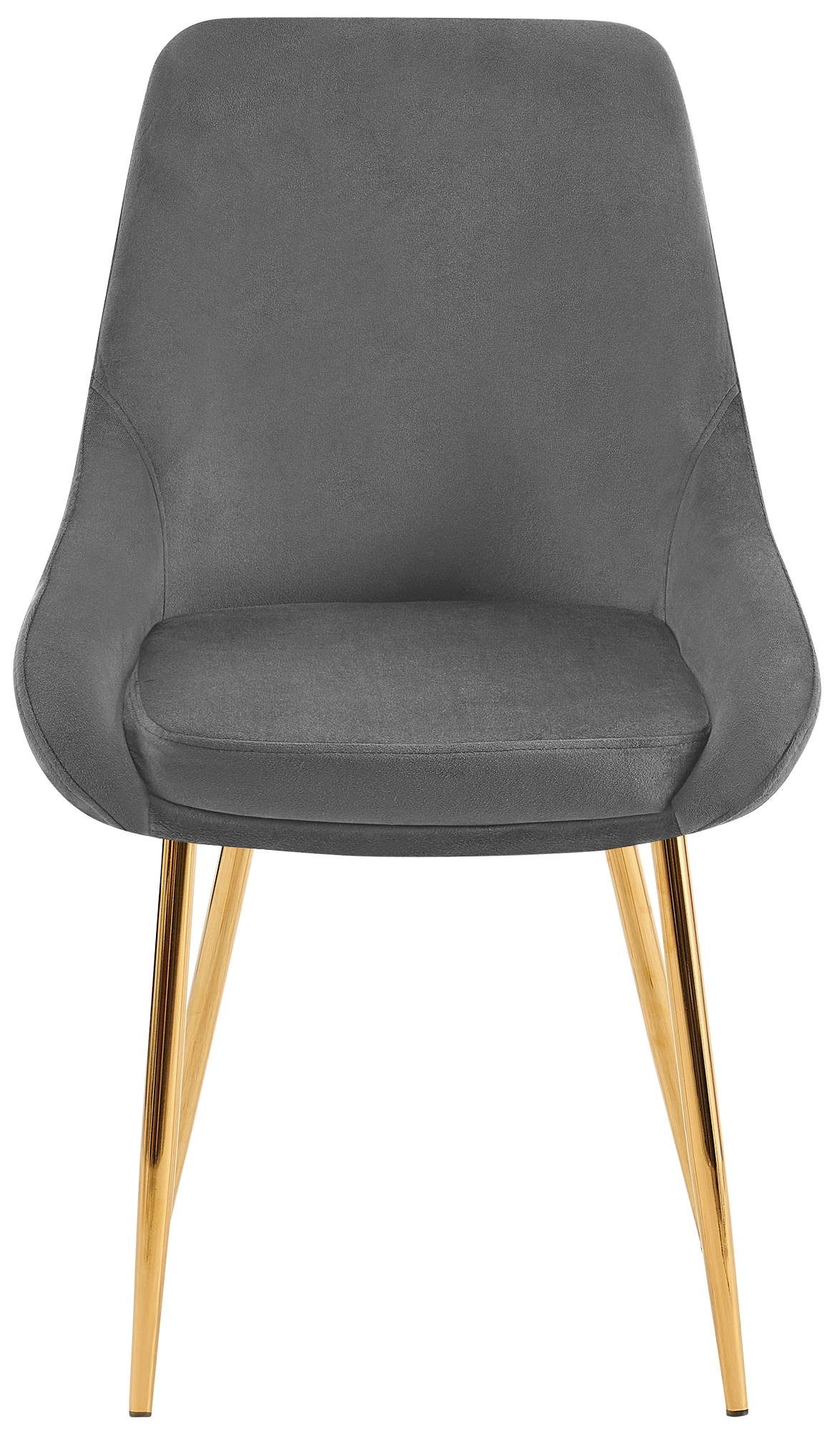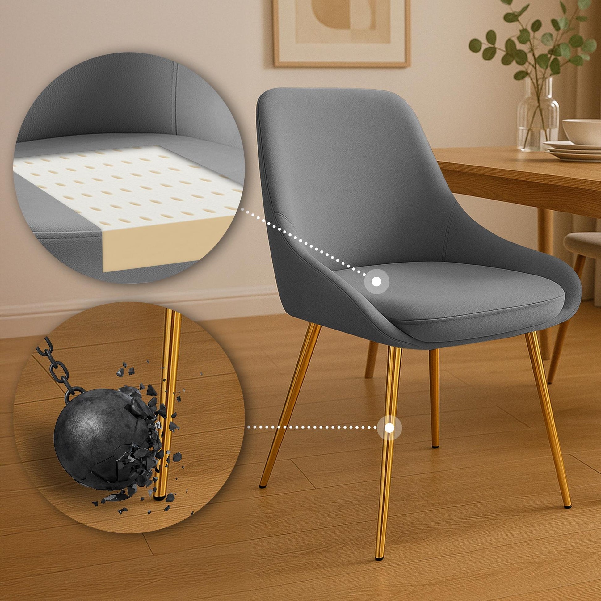 Set van 2 moderne eetkamerstoelen in donkergrijs met goudkleurig metalen onderstel
