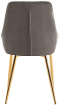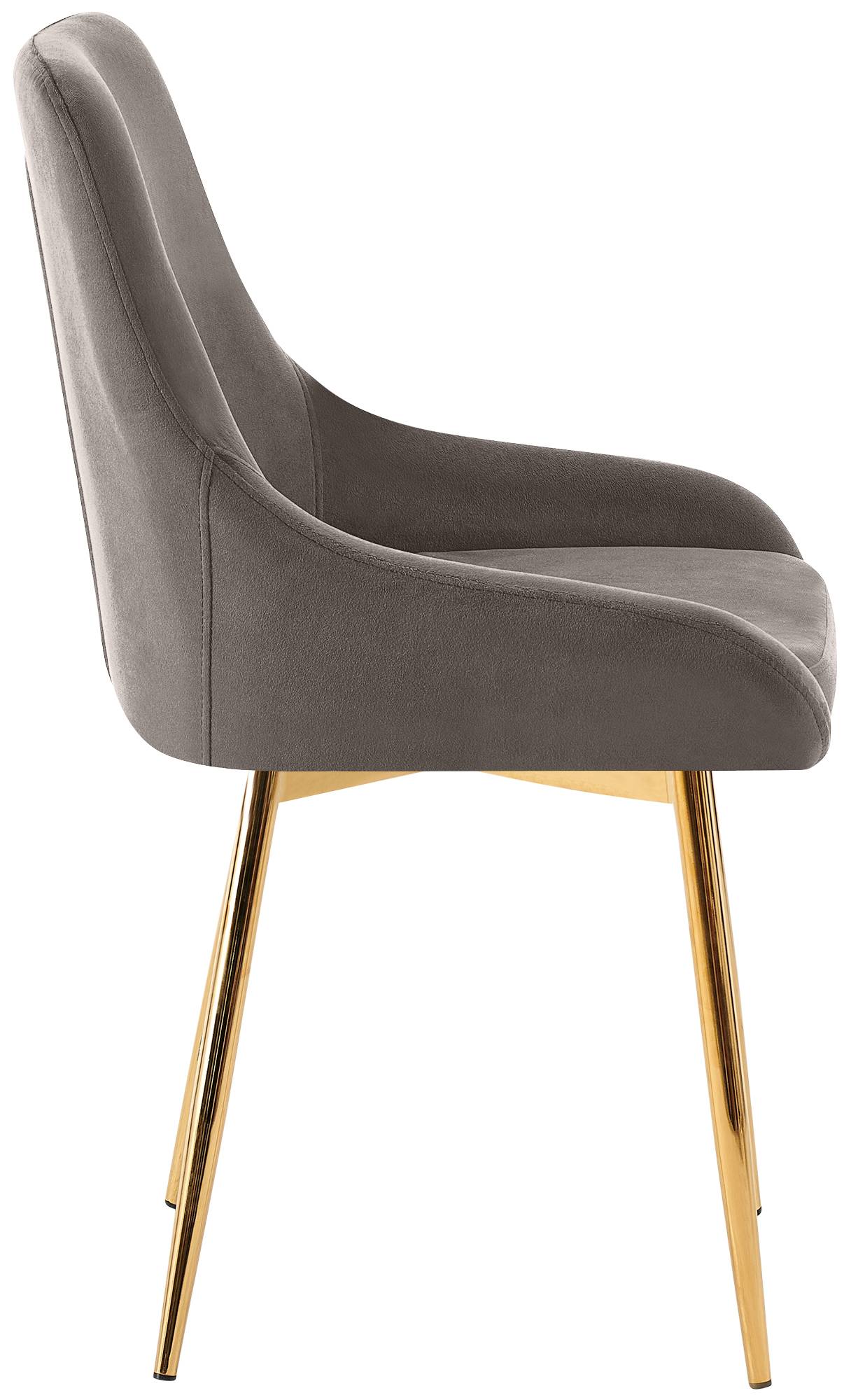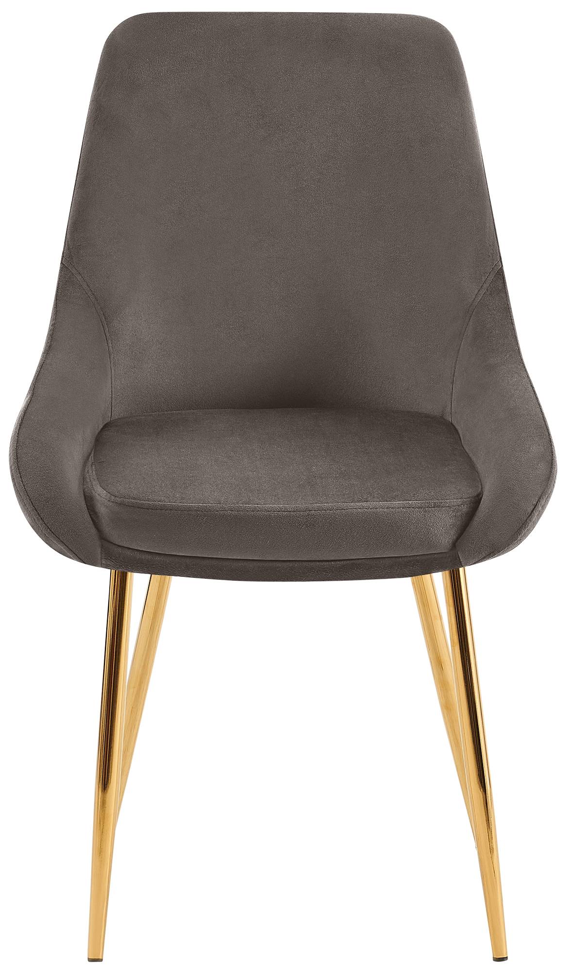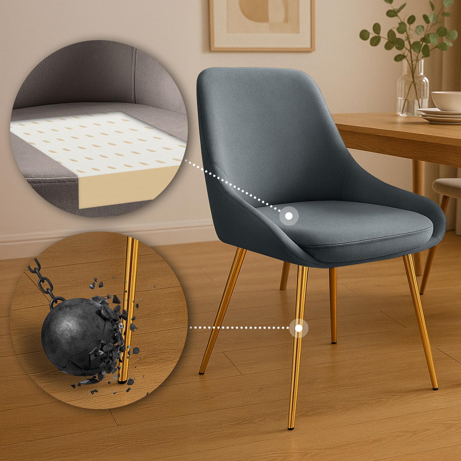 Set van 2 moderne eetkamerstoelen met fluwelen bekleding in antraciet en goudkleurig metaal