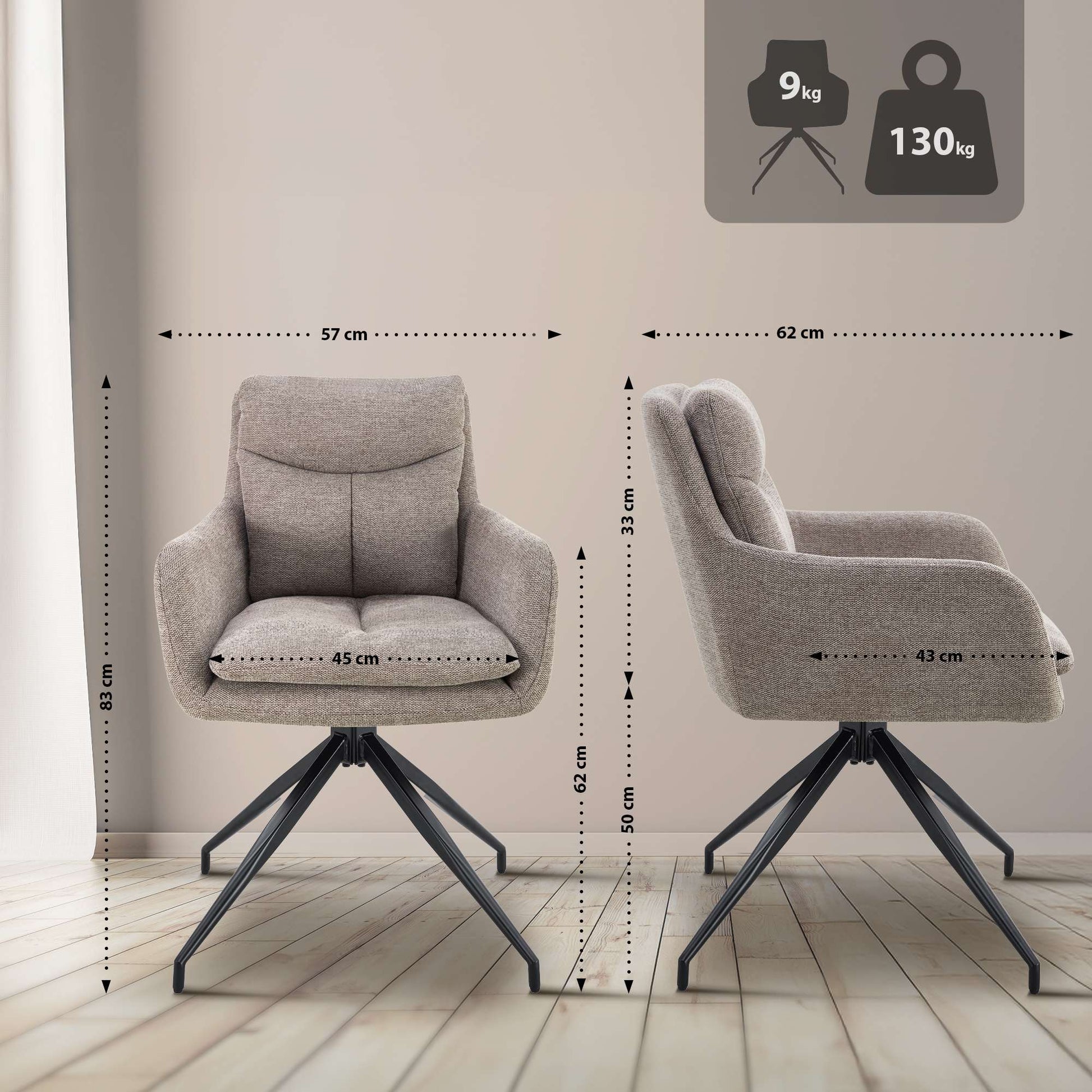 Armleuninghoogte: 62 cm