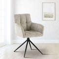 De eetkamerstoel in stof biedt het ultieme comfort gecombineerd met een elegant ontwerp. De stoel valt op door zijn robuuste constructie. Het stevige metalen frame zorgt voor een hoge stabiliteit en duurzaamheid, terwijl de hoogwaardige en slijtvaste meubelstof langdurig zitcomfort garandeert.
