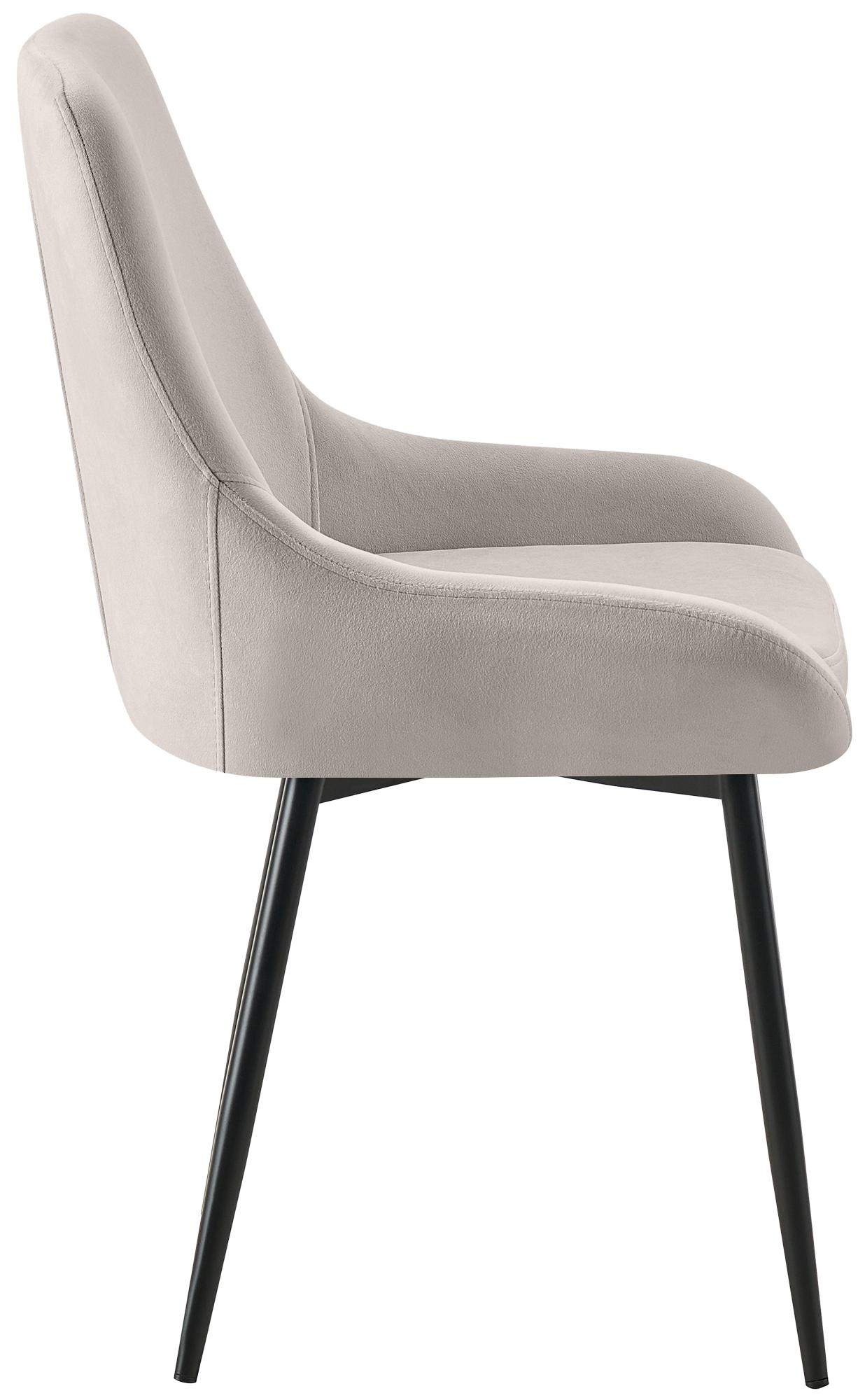 Geniet van stijlvol comfort in je eetruimte met deze set van twee eigentijdse eetkamerstoelen. Dankzij het elegante design en de hoogwaardige velvet bekleding zijn ze een prachtige aanvulling op iedere eetkamer. De stevige constructie zorgt voor duurzaamheid en elke stoel is belastbaar tot 150 kg.