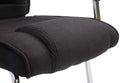 De stoelen geven elke ruimte een exclusieve uitstraling en overtuigen niet alleen door hun uitstekende ziteigenschappen, maar ook door hun moderne design. Vrij zwenkend passen ze zich precies aan de beenlengte en het gewicht van de persoon die erop zit aan. Dankzij de ergonomisch gevormde zitting en de comfortabel gestoffeerde armleuningen worden ook langere zitperiodes niet belastend. De comfortabele bekleding is bekleed met stof. De stoelen staan gewoon goed op het robuuste en extra versterkte metalen frame voor elke gelegenheid. Deze stoelen zijn ideaal voor grote en zware mensen, aangezien zij een maximale belasting van 180 kg kunnen dragen.