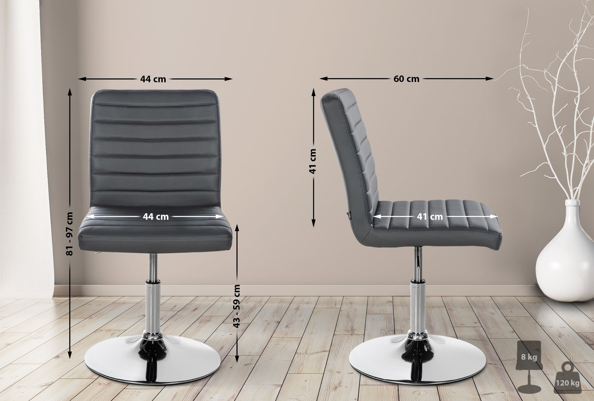 Zittingsoppervlak (BxD): 44 x 41 cm