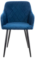 Deze set van 2 stoelen valt op door hun moderne design en comfortabele zit. Ze zijn royaal bekleed om urenlang aangenaam te zitten. Met arm- en rugleuningen bieden ze extra comfort. Dankzij het metalen vierpotige frame zijn ze stabiel en veilig. Perfect voor de eetkamer, woonkamer of studeerkamer, en de tijdloze stijl maakt ze veelzijdig. Kies tussen fluwelen of stoffen bekleding. De stoelen hebben vloerbeschermers om krassen te voorkomen.
