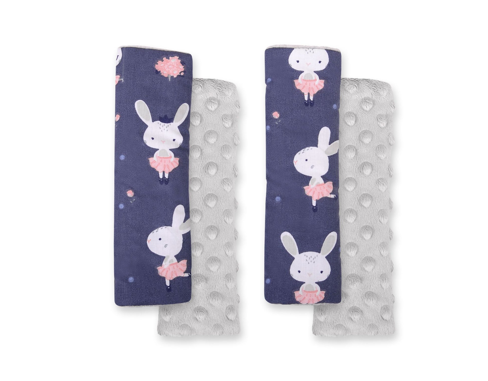 BOBONO Dubbelzijdige Bevestigingskussentjes voor Autogordels - Blauwe Konijntjes / Grijs