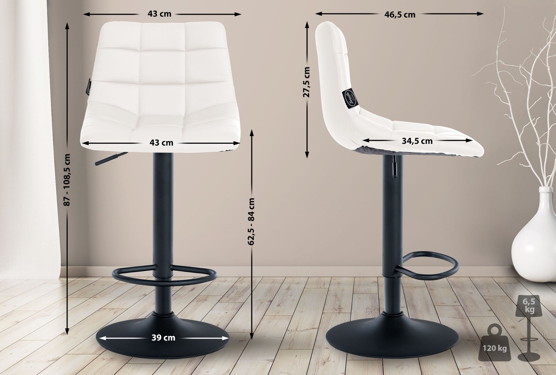 Deze elegante en stijlvolle barkrukken bieden een verstelbare hoogte, perfect voor aan tafel of countertop, met een 360° draaibare zitting voor meer bewegingsvrijheid. De zachte kunstlederen bekleding heeft een klassiek gewatteerd patroon, en het stevige metalen frame is beschikbaar in chroom of zwart voor duurzaamheid en stabiliteit. Het moderne ontwerp past in elk interieur en is eenvoudig te monteren en schoon te maken met een vochtige doek.