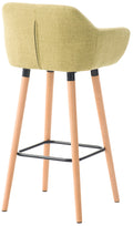 Deze set van 2 barkrukken voegt iets speciaals toe aan elke bar. Ontworpen als een fauteuil, vallen deze stoelen op door hun aantrekkelijke uiterlijk. De rugleuning en vorm maken langere periodes van comfortabel zitten mogelijk. Dankzij de stoffen bekleding en het afneembare kussen zijn ze gemakkelijk schoon te maken. Het klittenband houdt de zitting stevig op zijn plaats, en de kussenhoes kan eenvoudig worden verwijderd en gewassen dankzij de ritssluiting. Het stabiele vierpotige frame van beukenhout, uitgerust met een discrete metalen voetsteun, vervolledigt het ontwerp van deze kruk.