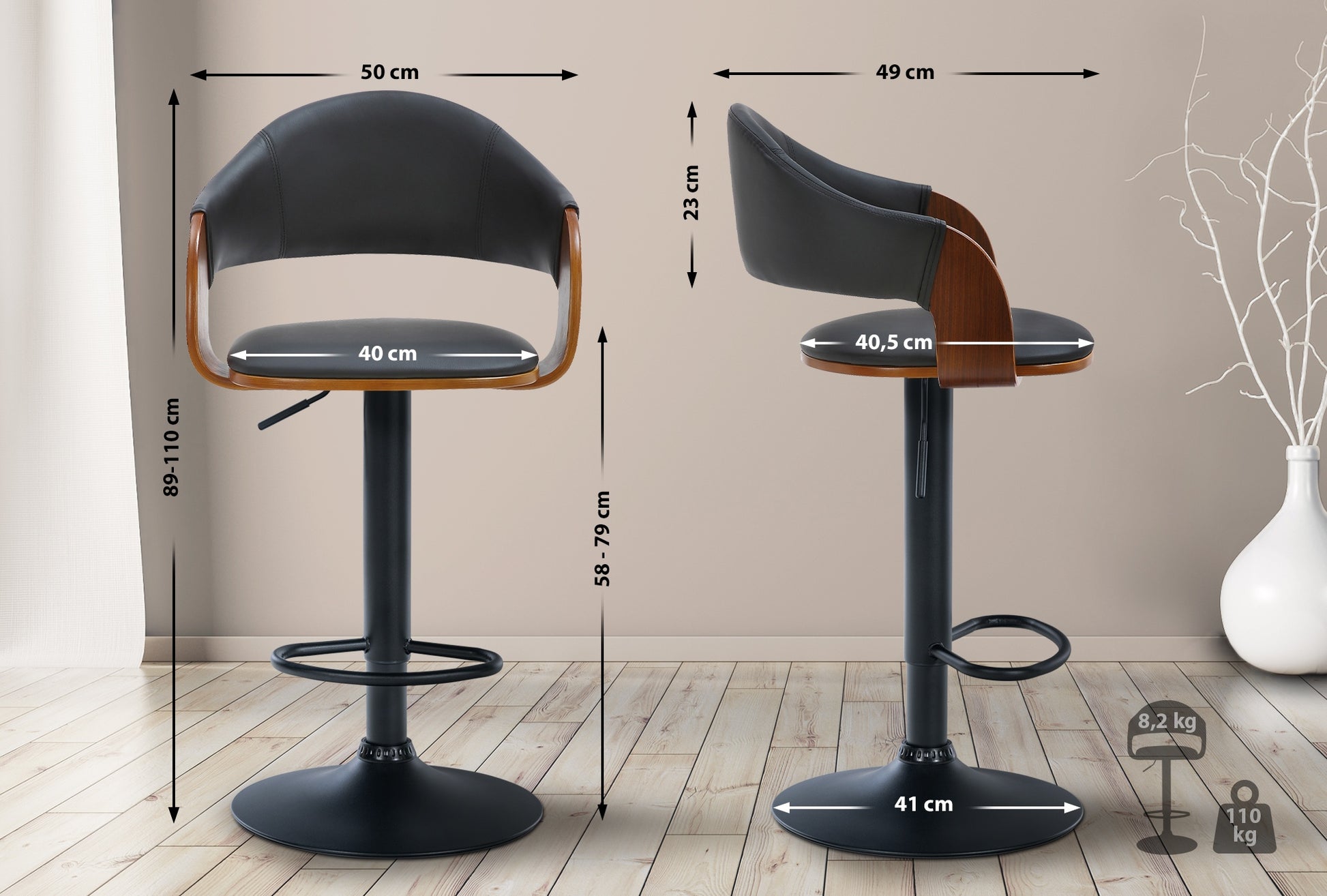 Deze stijlvolle barkrukken blinken uit door een eigentijds ontwerp dat optimaal comfort biedt. Het stevige houten frame wordt aangevuld met een beklede zitting van onderhoudsvriendelijk kunstleer. De kruk is eenvoudig in hoogte verstelbaar en dankzij de 360 graden draaifunctie vind je altijd de ideale zithouding. Voor extra zitgemak is er een geïntegreerde voetensteun die een comfortabele en rechte positie mogelijk maakt. De vloerbeschermer onderaan voorkomt krassen op je vloer.