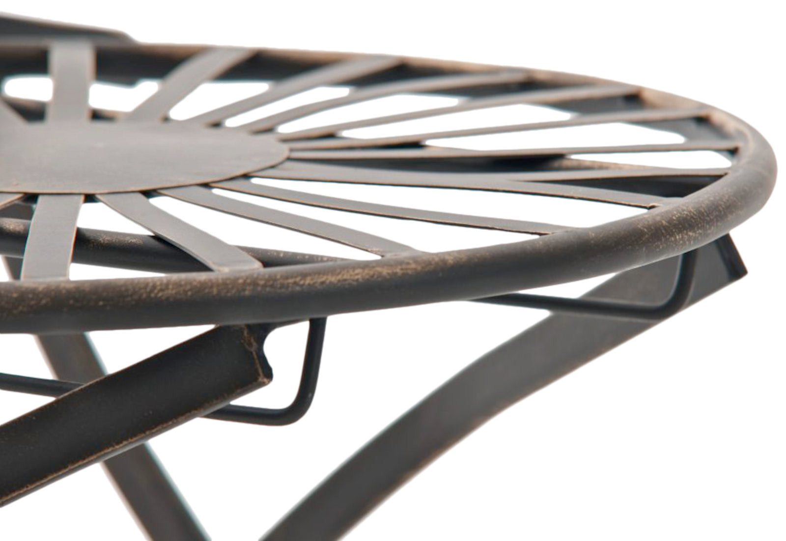 Het product is vervaardigd uit ijzer, waardoor het uiterst stabiel is. Het oppervlak is verfijnd met een met de hand aangebrachte antieke patina. Dit elegante designstuk past perfect bij alle metalen tafels in onze winkel.