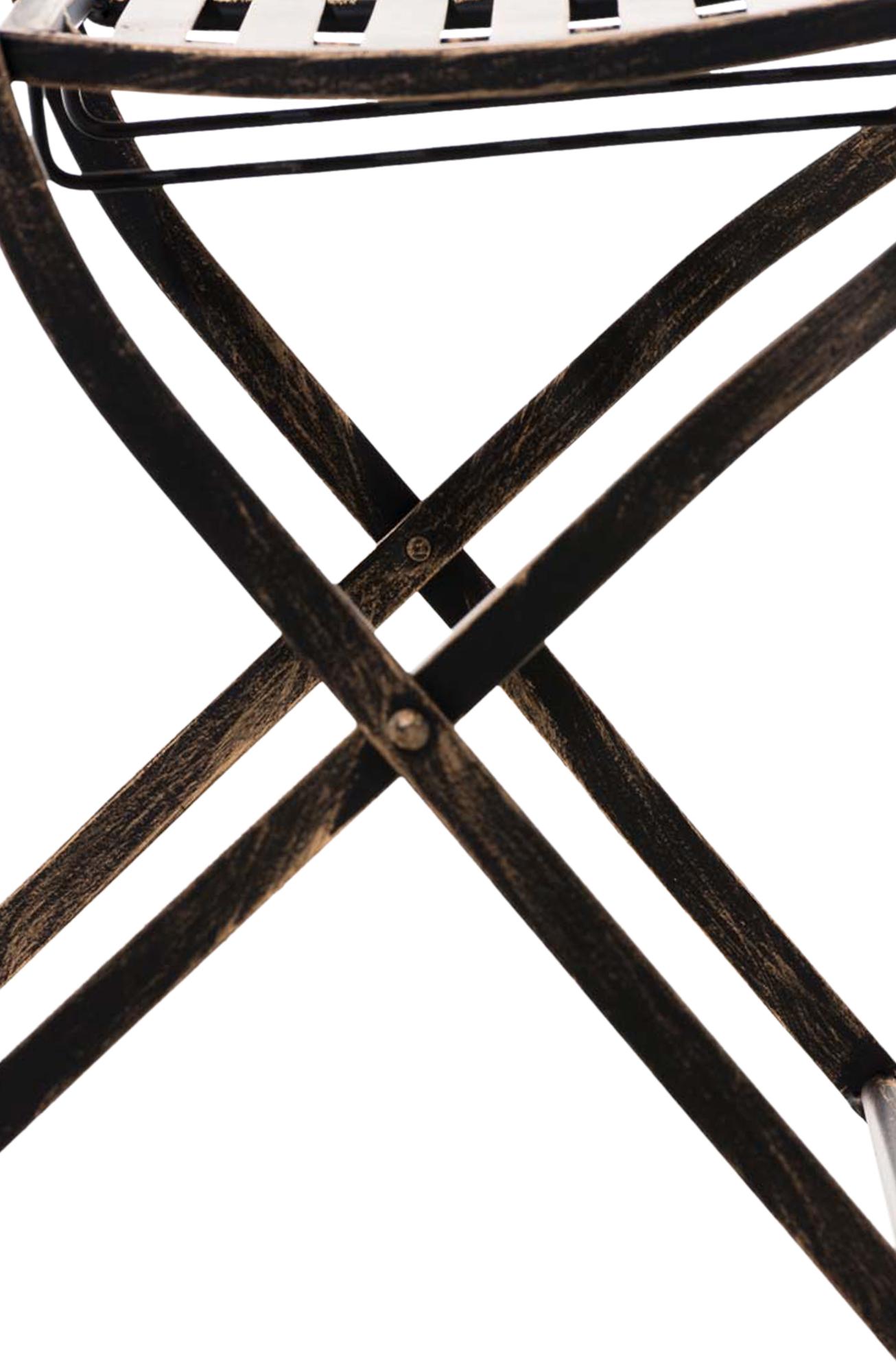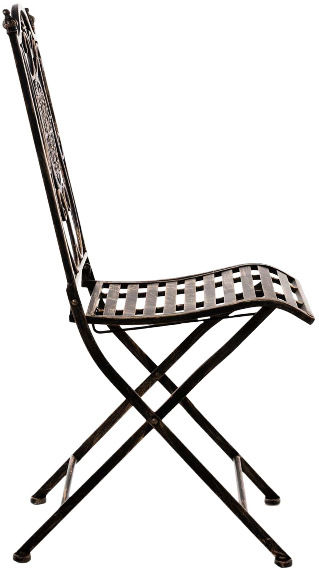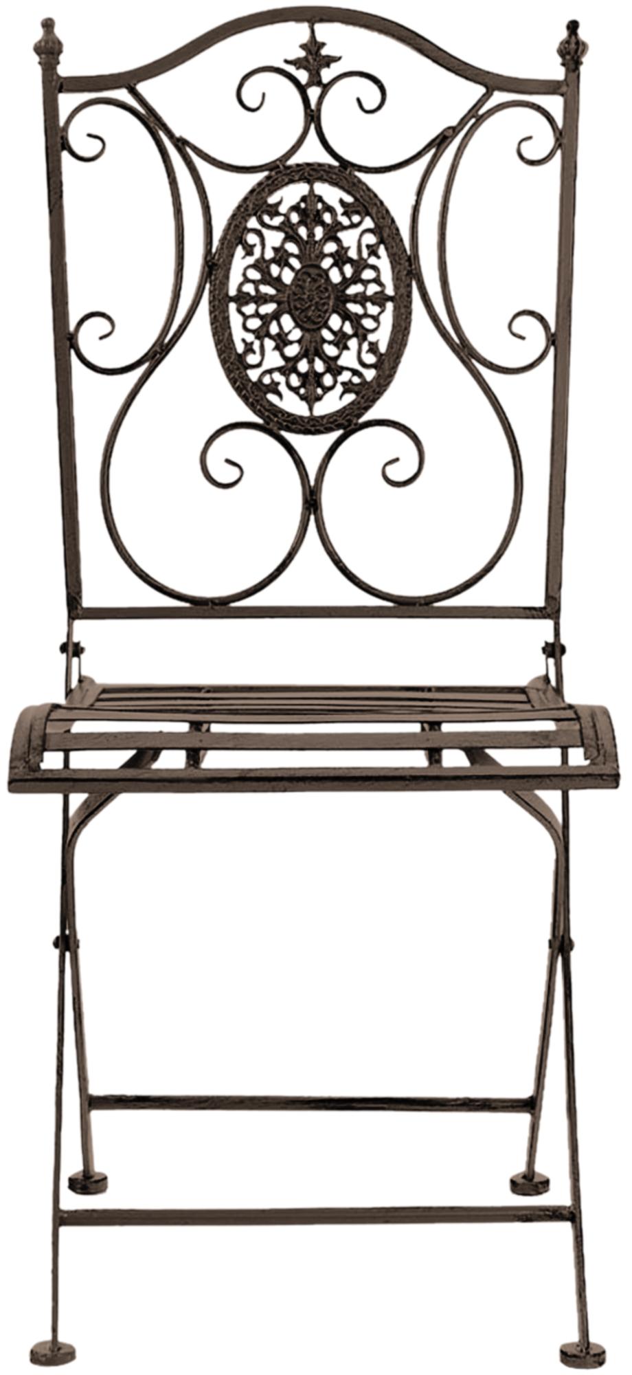Deze klapstoelen zijn een echte blikvanger op elk terras en in elke tuin. Ze maken indruk door hun sierlijke vorm en liefdevol handgemaakte details. De mooie ornamenten maken van deze stoelen een speciale plaats in uw tuin en zorgen voor een nostalgische flair. Gezellig en praktisch tegelijk: de hoge rugleuning en de gebogen zitting zorgen ervoor dat u comfortabel kunt zitten. Wanneer nodig kunnen de ijzeren stoelen gemakkelijk worden ingeklapt en opgeborgen om ruimte te besparen. Het product is gemaakt van ijzer en is daarom uiterst stabiel. Het oppervlak is afgewerkt met handgemaakt antiek patina.