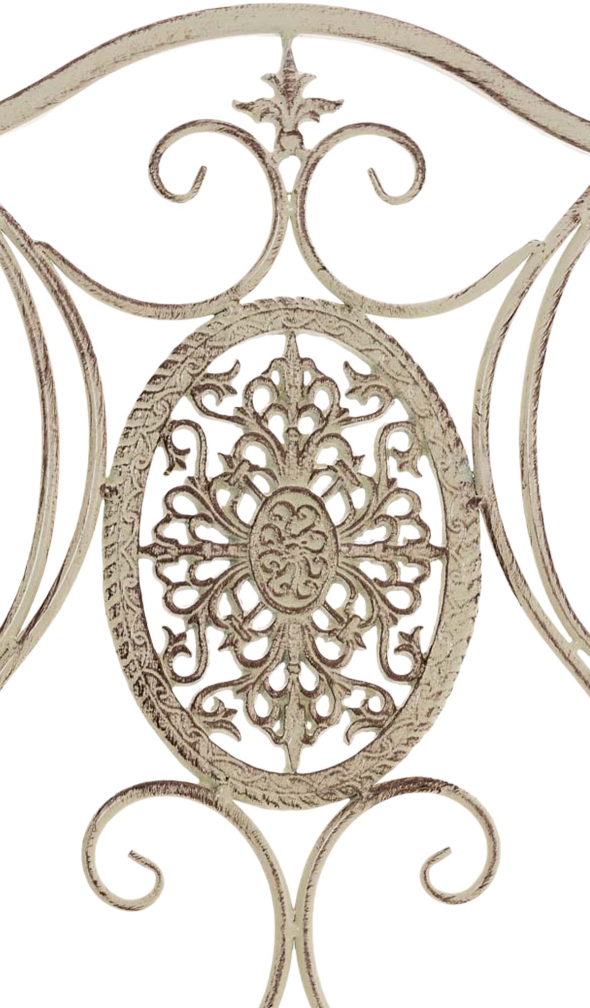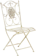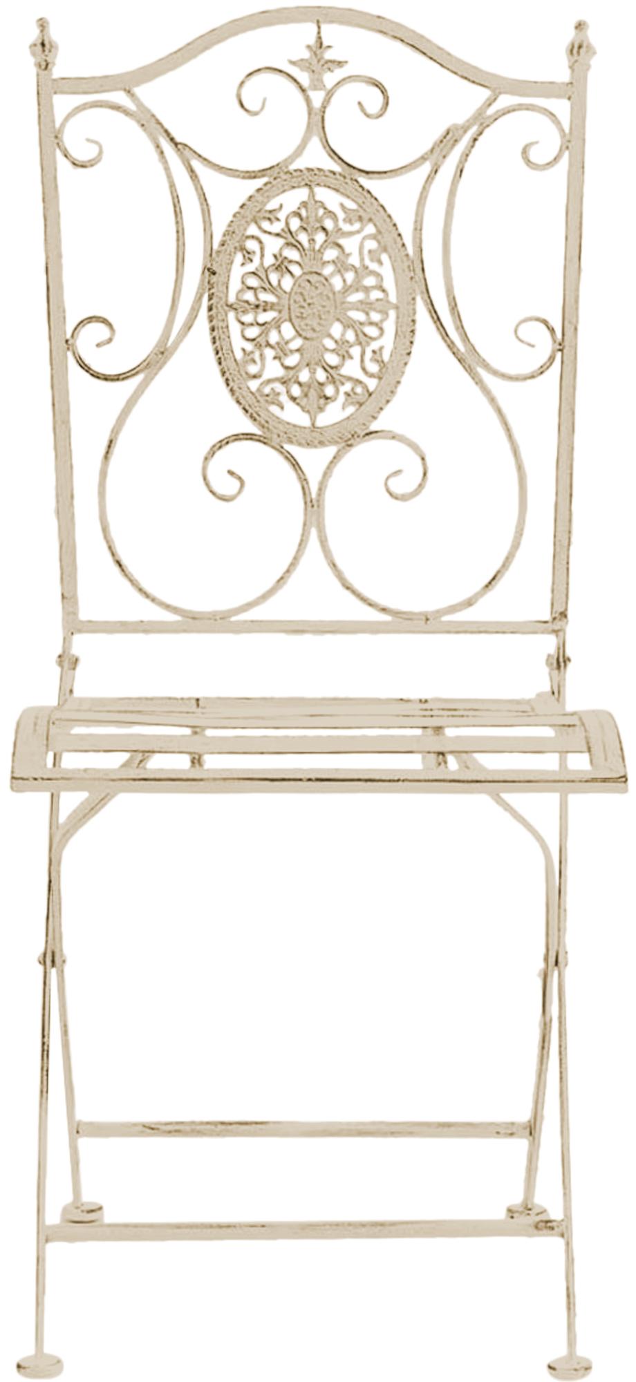 Gezellig en praktisch tegelijk: de hoge rugleuning en gebogen zitting zorgen ervoor dat u comfortabel kunt zitten. Wanneer nodig kunnen de ijzeren stoelen eenvoudig worden ingeklapt en opgeborgen om ruimte te besparen. Het product is gemaakt van ijzer en is daardoor zeer stabiel. Het oppervlak is afgewerkt met handgemaakt antiek patina.