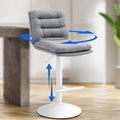 Dankzij het elegante frame en de luxe bekleding krijgt de stoel een verfijnde uitstraling. De duurzame, stoffen bekleding is slijtvast. Het frame is van metaal, biedt verstelbare hoogtes en een 360 graden draaifunctie voor maximale bewegingsvrijheid.
