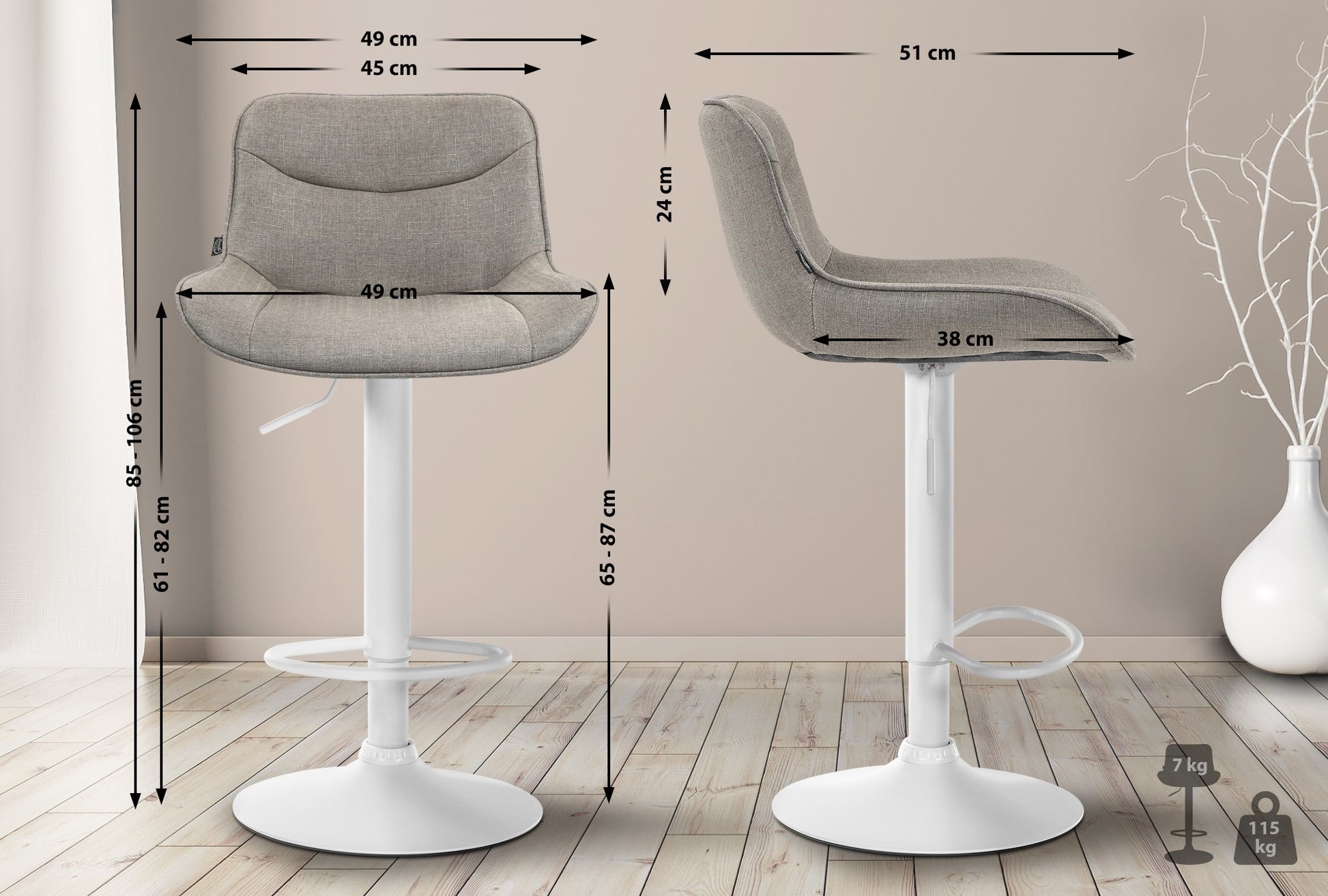Deze set stoffen barkrukken combineert functionaliteit met eigentijds design. De krukken zijn in hoogte verstelbaar en hebben een comfortabele, ergonomische zitting. Dankzij de draaifunctie van 360 graden en de traploze hoogteverstelling kun je altijd flexibel zitten.