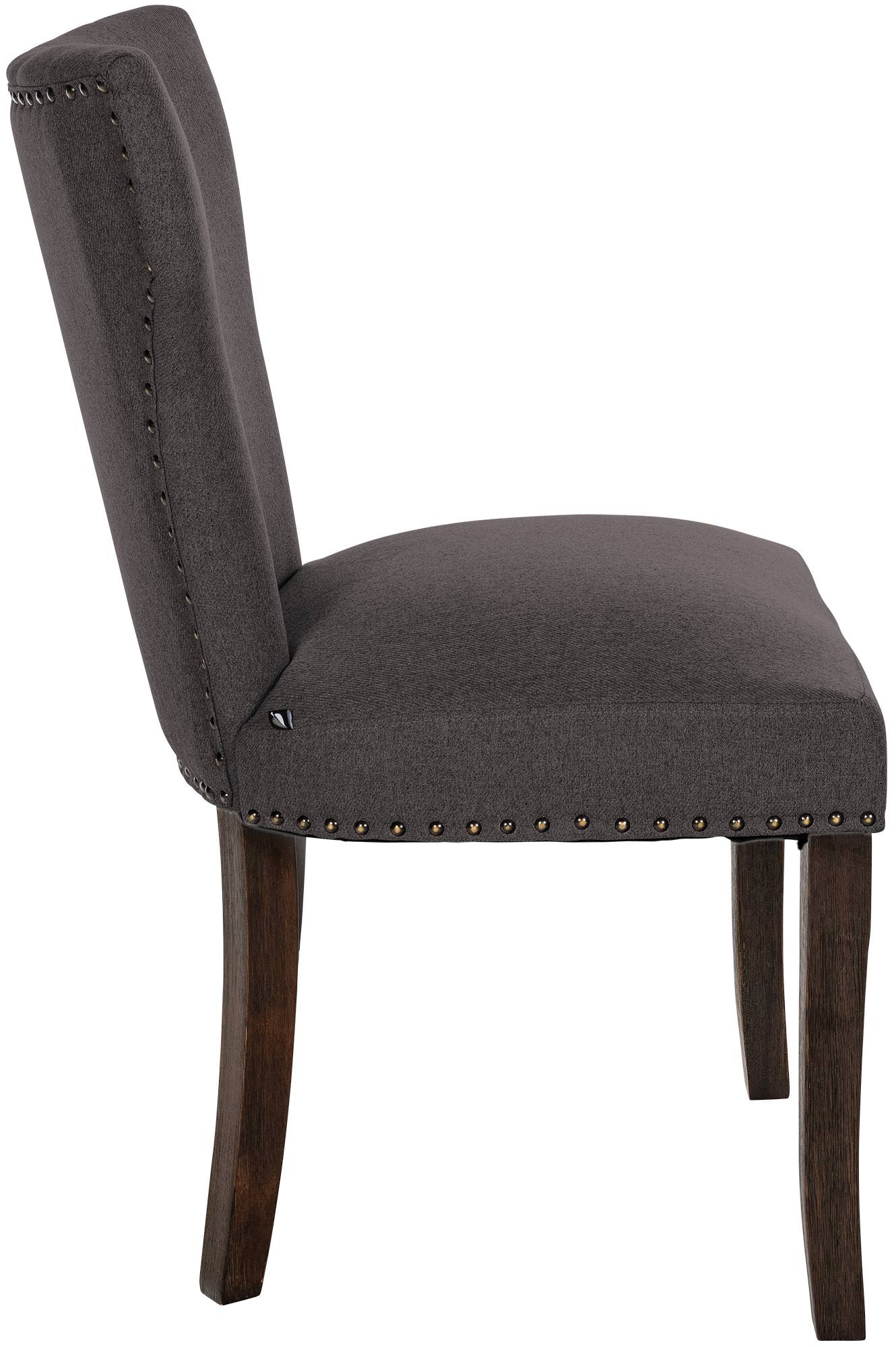 Deze eetkamerstoelen hebben een gestoffeerde zitting en rugleuning voor ultiem zitcomfort. Door de stoffen bekleding met een aantrekkelijke uitstraling en het subtiele klinknageldecor, krijgt de stoel een tijdloze elegantie die elke eetkamer een upgrade geeft. De stoelen zijn veelzijdig in gebruik; perfect voor eetkamers, maar ook een aanvulling in andere woonruimtes en keukens. De stevige, antiek uitziende houten poten bieden stabiliteit en duurzaamheid, terwijl vloerbeschermers gevoelige oppervlakken tegen krassen beschermen. Dankzij het onderhoudsvriendelijke design blijft de stoel lang mooi en uitnodigend.