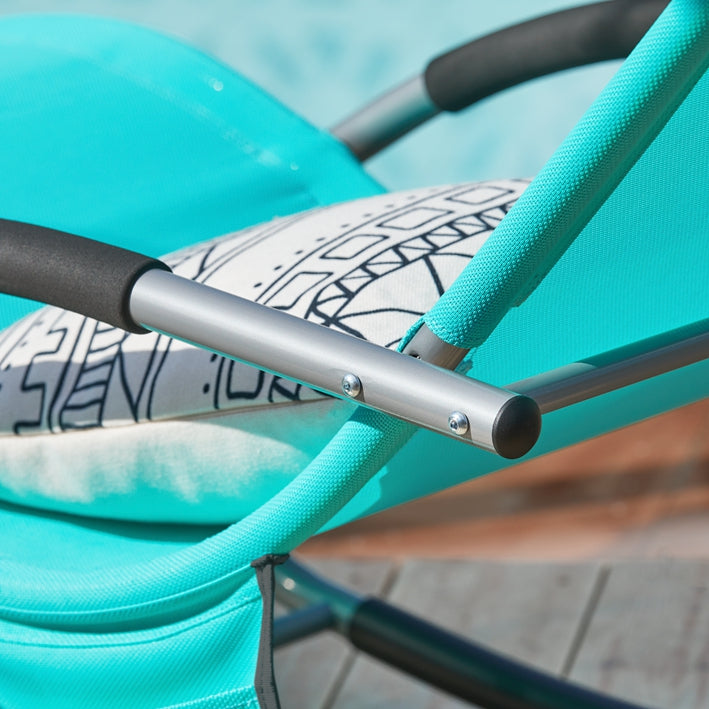 Set van 2 tuinligstoelen - ligstoel - schommelstoel - ademende synthetische vezels - verwijderbaar kussen - geïntegreerde zijzakken - gecoate EVA-armleuningen - 150 kg draagvermogen - afmetingen zoals afgebeeld - turkoois