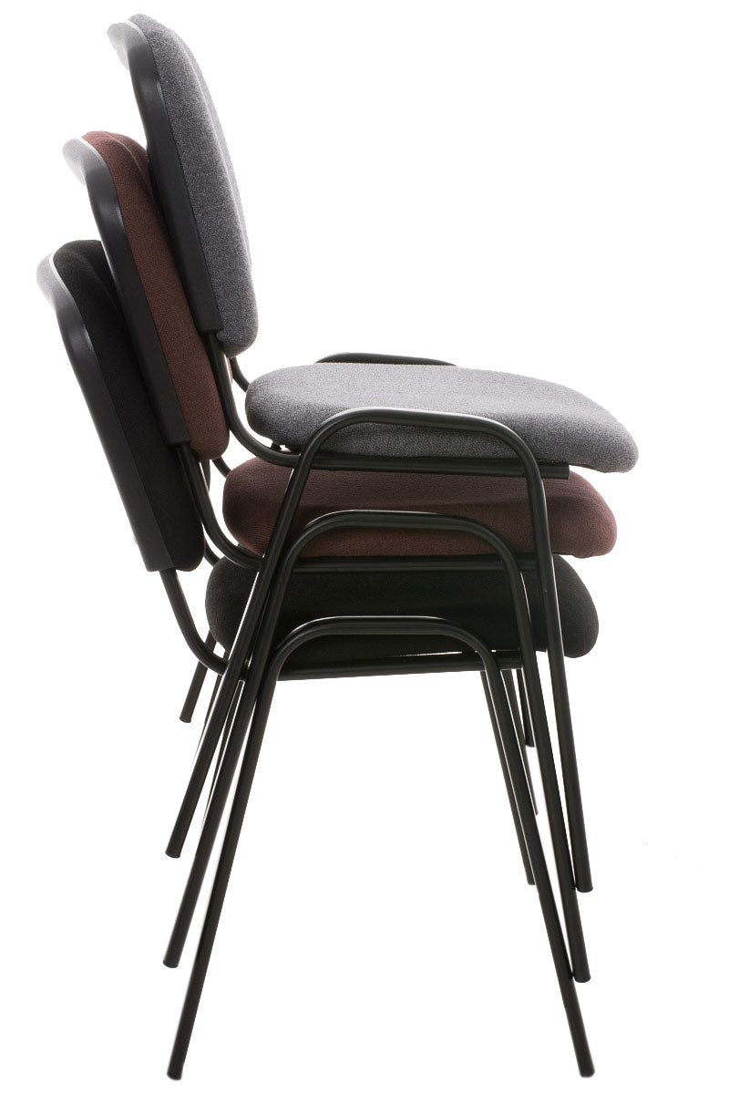 Deze set van vier bezoekersstoelen is perfect voor wachtruimtes, beurzen of andere evenementen. Door het stapelbare ontwerp kunnen de stoelen eenvoudig ruimtebesparend worden opgeborgen. Het tijdloze uiterlijk past in diverse omgevingen en de comfortabele, beklede zitting zorgt ervoor dat u ook tijdens langere bijeenkomsten prettig zit. Het stevige onderstel van matzwart metaal biedt extra stabiliteit.