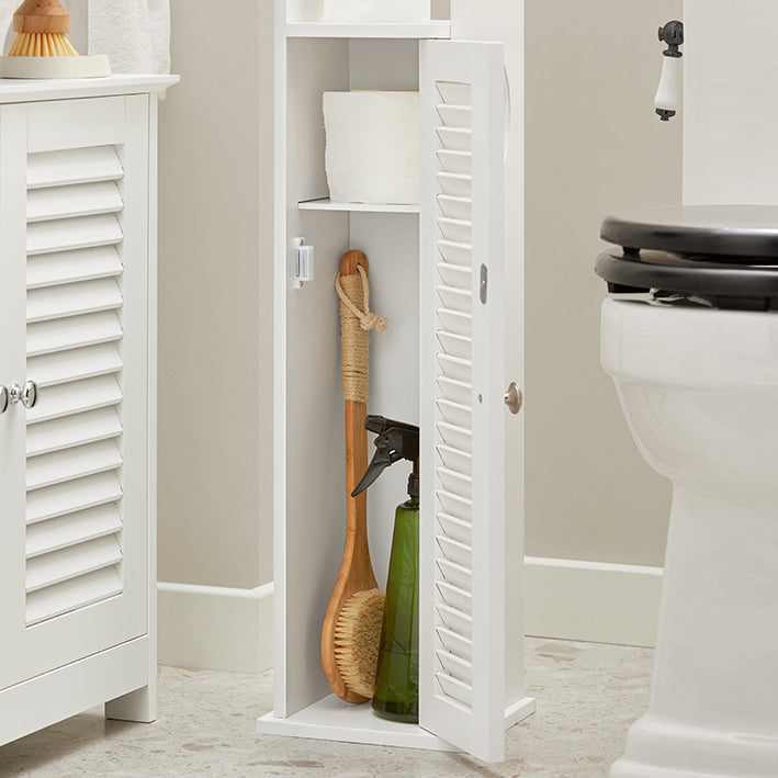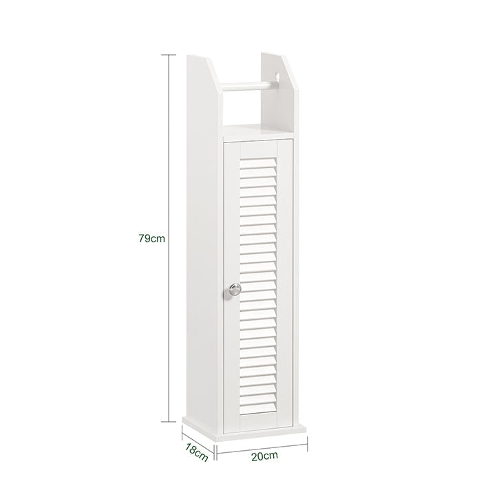 Smalle toiletpapierkast - Badkameropslag - Ruimtebesparend - Schimmelbestendig - Luchtdoorlatende lattendeur - 20 cm x 79 cm x 18 cm