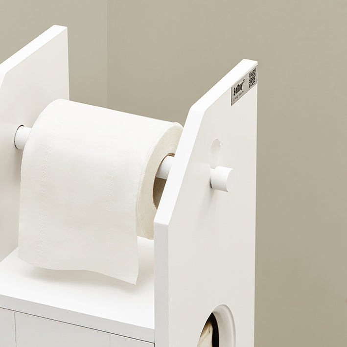 Veelzijdige opslagoplossingIn deze kast kun je niet alleen toiletpapier opbergen, maar ook schoonmaakspullen, toiletartikelen of een toiletborstel, waardoor het een veelzijdig organisatorisch hulpmiddel is voor al je badkamerbenodigdheden.