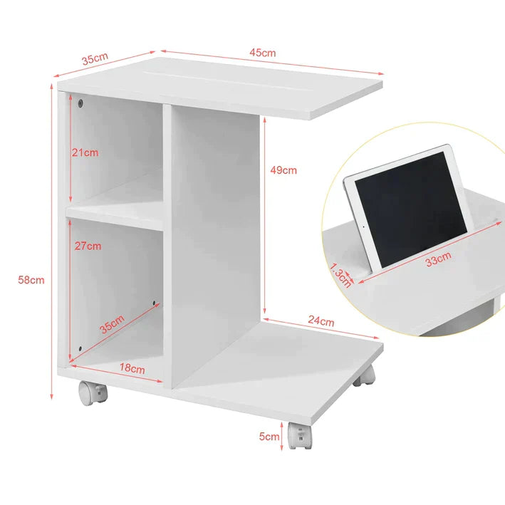 Sofa Bijzettafel-Bijzettafel Salontafel op Wielen met 2 Opbergplanken & Tablethouder