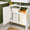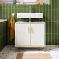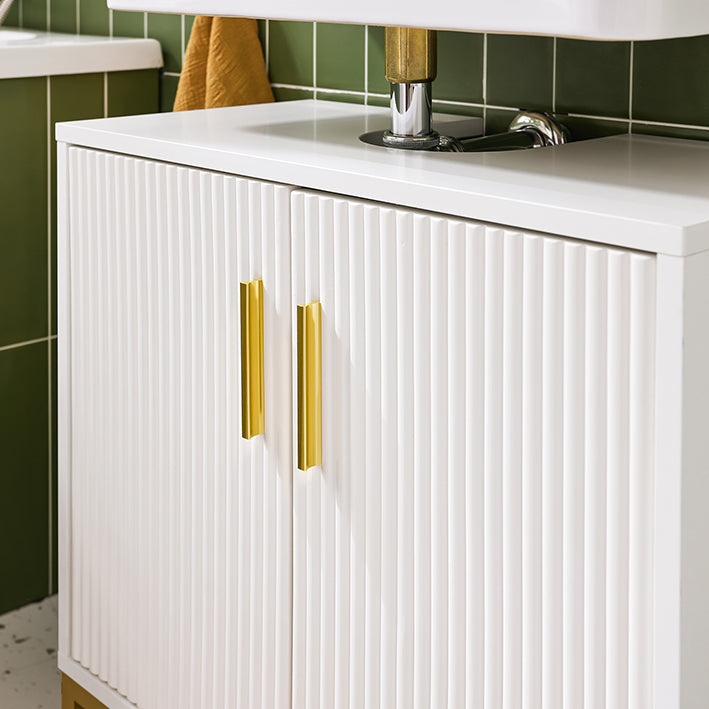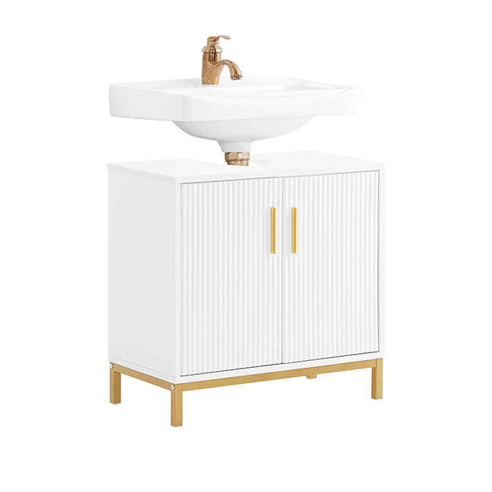 Spoelbakkast - Badkamerkast - Opbergkast - Verstelbare Plank - 60x59x30cm - Klassiek Wit met Gouden Metalen Handgrepen - Modern Design