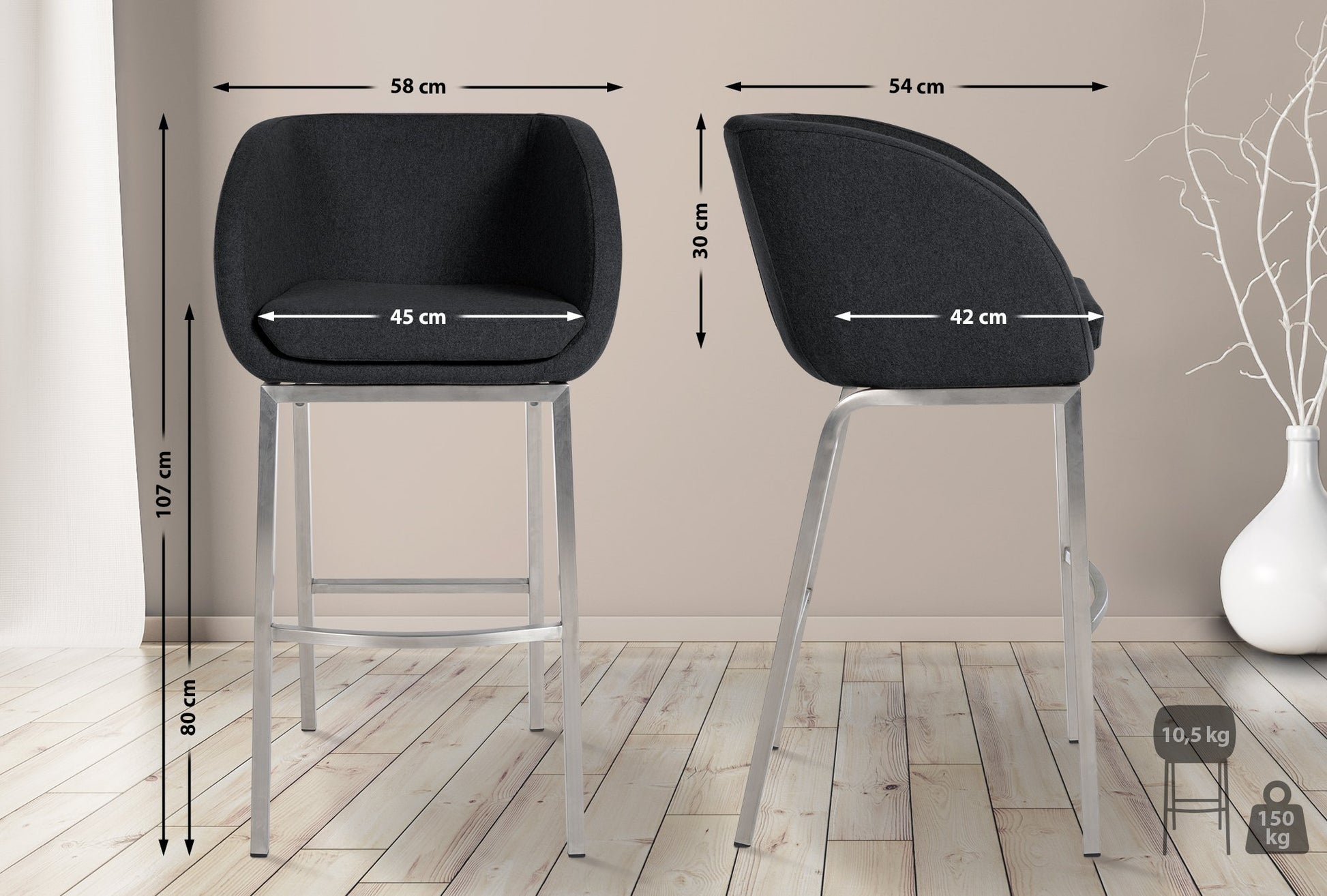 Het robuuste frame van roestvrij staal biedt uitzonderlijke stabiliteit en duurzaamheid. Het is bestand tegen roest en corrosie en kan tot 150 kg dragen. De voetsteun draagt bij aan extra comfort, ideaal voor lange avonden aan tafel.